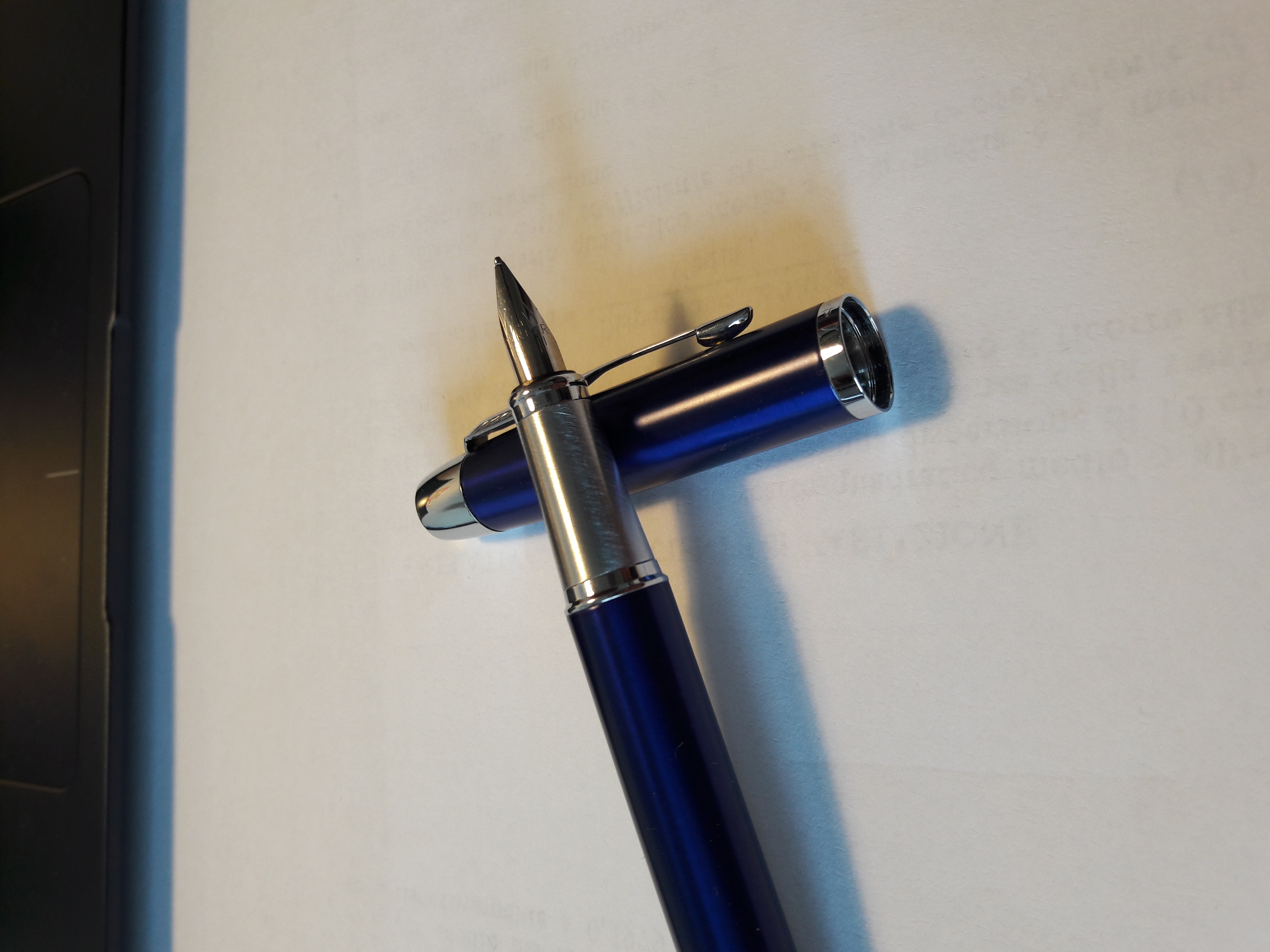 Ecco, svelata l'identità :) Grazie per l'aiuto! Il pennino è molto rigido, e all'inizio potresti avere qualche salto. La penna, più di altre, ha bisogno di scrivere: più la userai, più andrà bene. Grazie della dritta. E' sempre stata chiusa nel cassetto, l'ho usata una sola volta e non ricordo nemm...