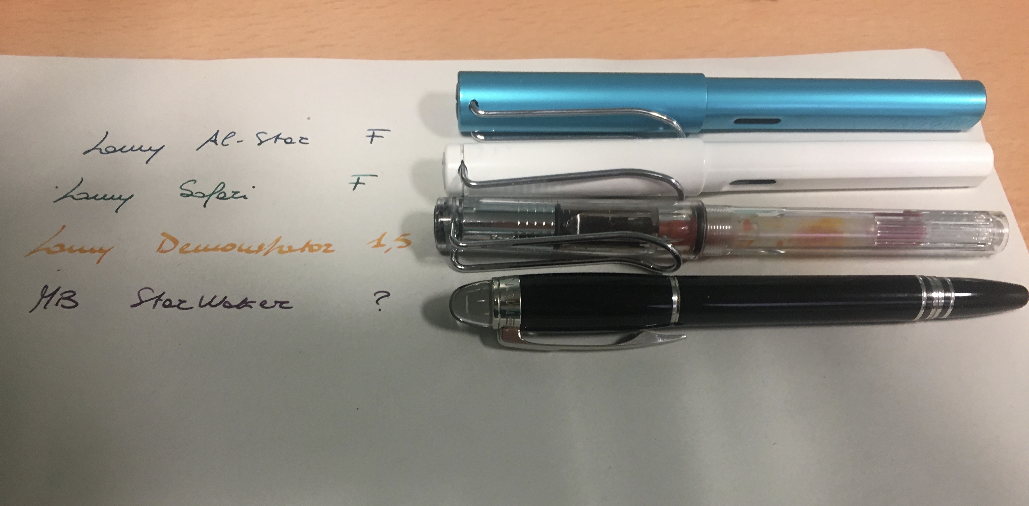 Mio cugino (cuggino) mi ha regalato due Hemingway che non usava più. Scherzavo, il momento di gioia è mio figlio, 6 anni e primo anno di scuola, che ha voluto mandare un messaggio alla sua maestra di italiano, visto che a parte le lezioni a distanza non la vede da due mesi e passa. Quindi: Lamy Safa...