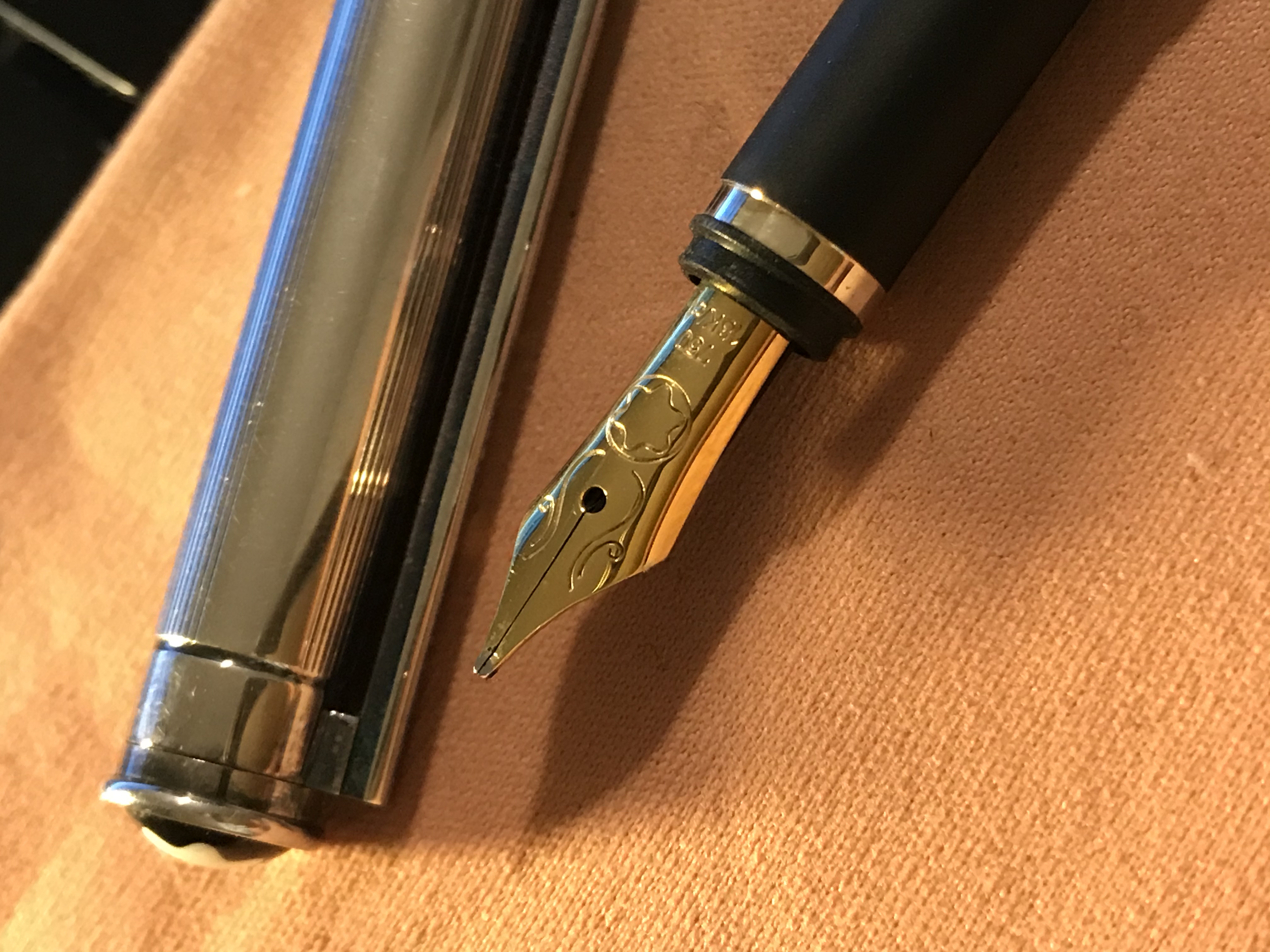 Penna arrivata. Nella sua confezione originale, risulta acquistata nel dicembre 2006. Nuova, mai usata, mi sembra.... Posto un paio di foto del pennino sul quale leggo dopo 18k le lettere “ct” . che stanno a significare? Che tipo e misura di pennino ha? Sul corpo della penna, oltre che sul cappuccio...