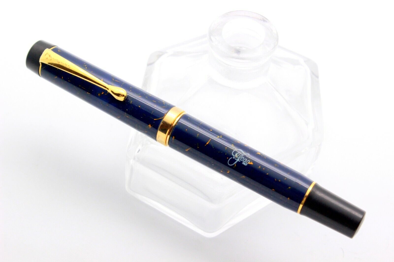 a che siamo a mostrarle aggiungo anche le mie questa è una Leader Verde P1160542-3 Filcao verde screziato.jpg questa invece è una piccola penna in blu lapislazuli, che dopo un po' di ricerche mi sembra di aver identificato come modello Kamaleon, in acetato di cellulosa. P1180825-3 Filcao Kamaleon O...