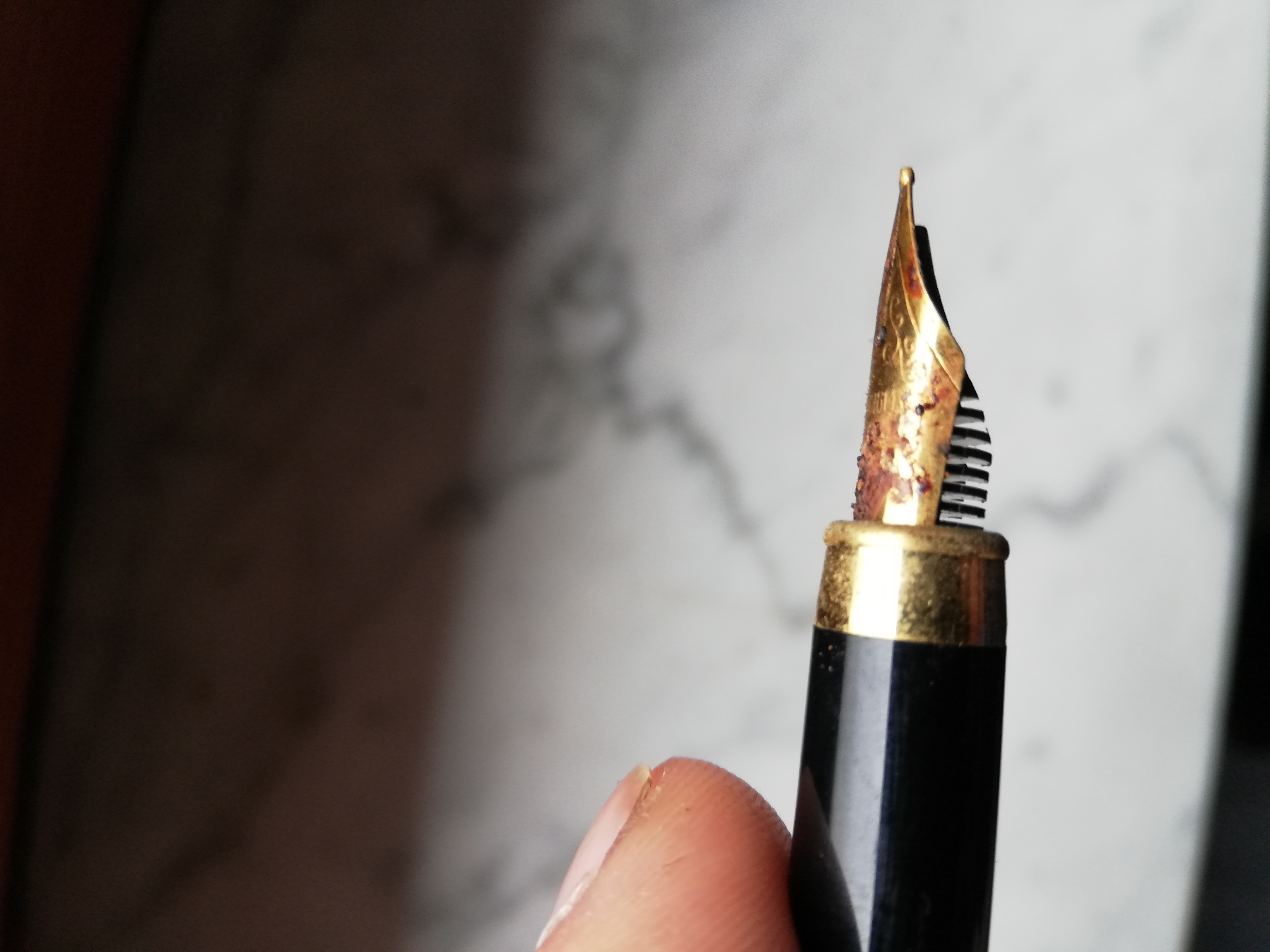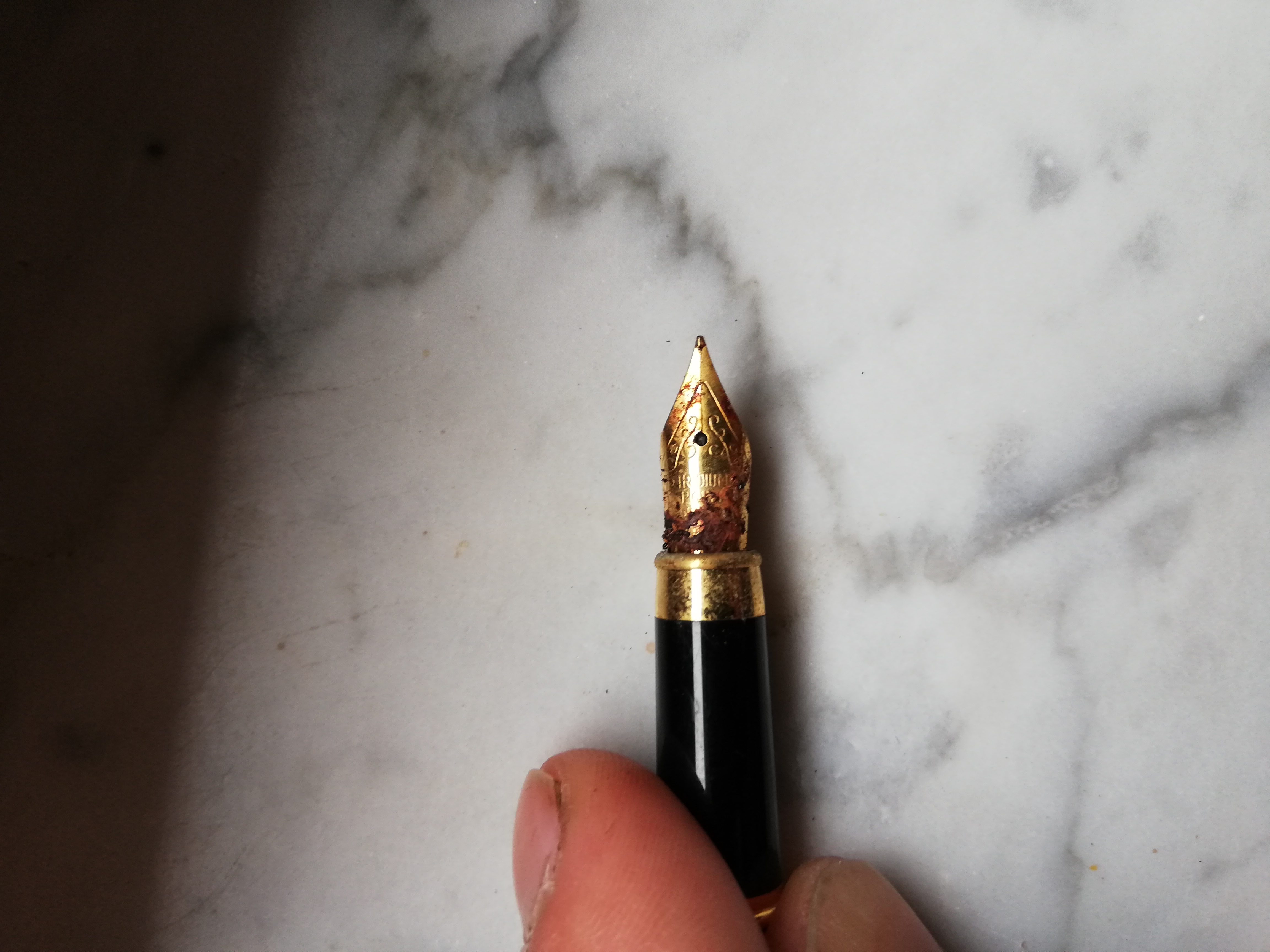 Ho ritrovato questa penna in un cassetto dove è rimasta per anni... Qualcuno potrebbe per favore dirmi se si può recuperare? Come si dovrebbe vedere dalle foto ha delle brutte incrostazioni, se non addirittura ruggine