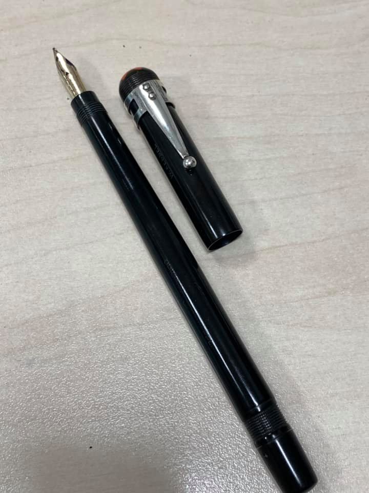 Prima che Montblanc fosse Montblanc... c'era la simplo filler pen and co... e produceva penna con la testina rossa... che poi divento testina bianca.. poi stella rossa e poi stella bianca... caricamento eyedrop... siamo proprio agli albori... ancora il successo doveva arrivare... ecco a voi la "...
