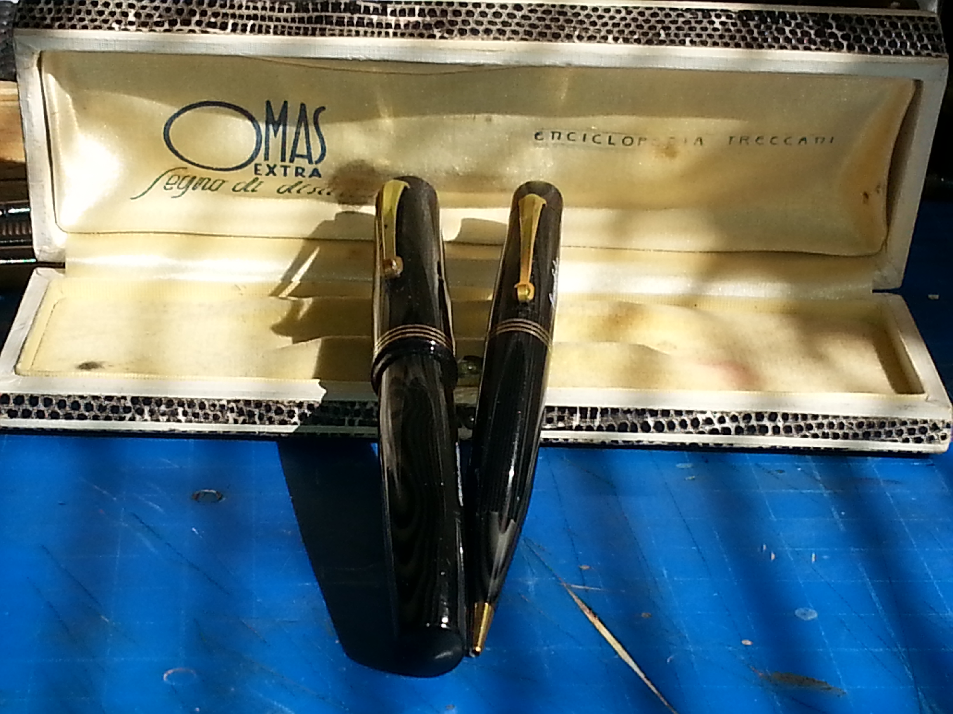 Contraccambio la tua condivisione con una pubblicità che parla del tuo "ricostituendo" set: stilografica (però sfaccettata con vera grecata) & matita: un set OMAS Extra è indispensabile proprio come il "nécessaire" da viaggio...Ricordati di portarle con te, la prossima volta che viaggerai in treno!!