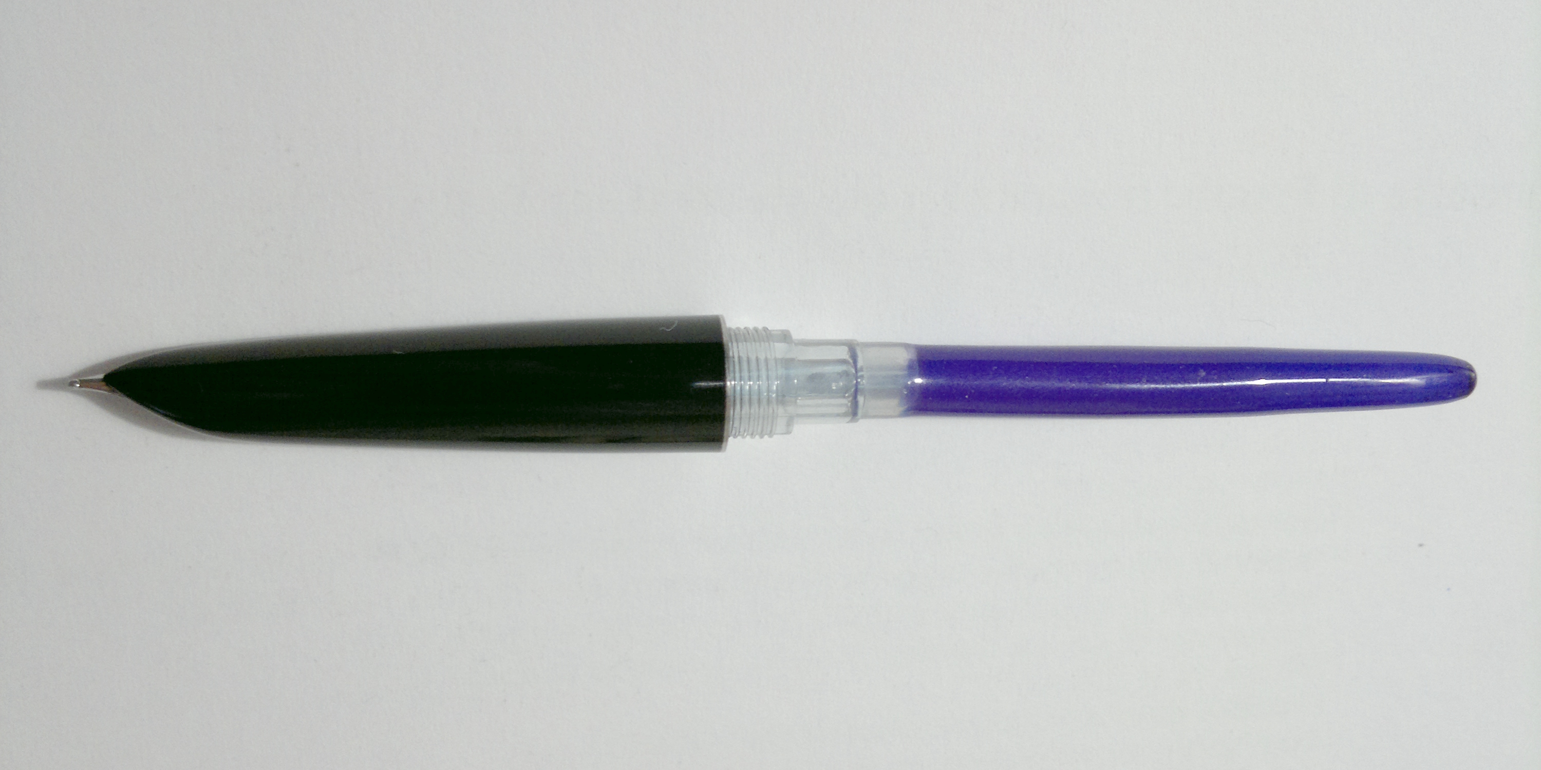 In questa penna ho usato un'inchiostro blu-nero "fatto in casa", ottenuto miscelando le rimanenze di altri inchiostri.