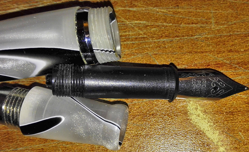 La cosa strana, almeno per me che non conosco nulla del marchio Delta, è la presenza del famigerato pennino Iridium Point Germany, che però si innesta perfettamente a vite nella sezione con il suo gruppo alimentatore..