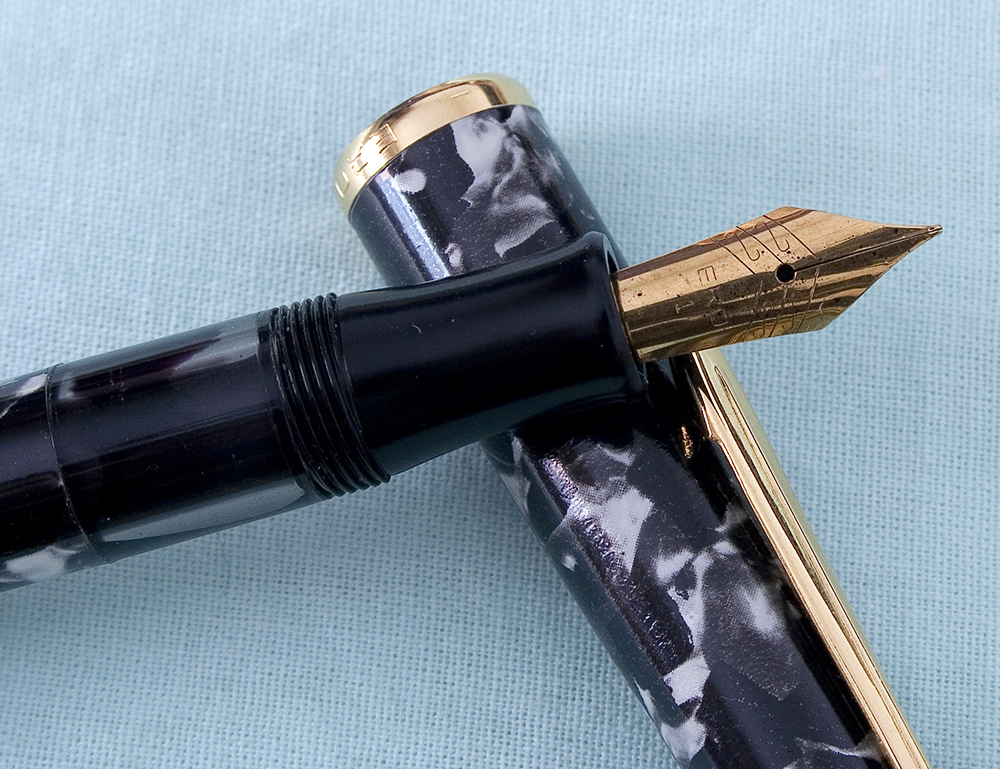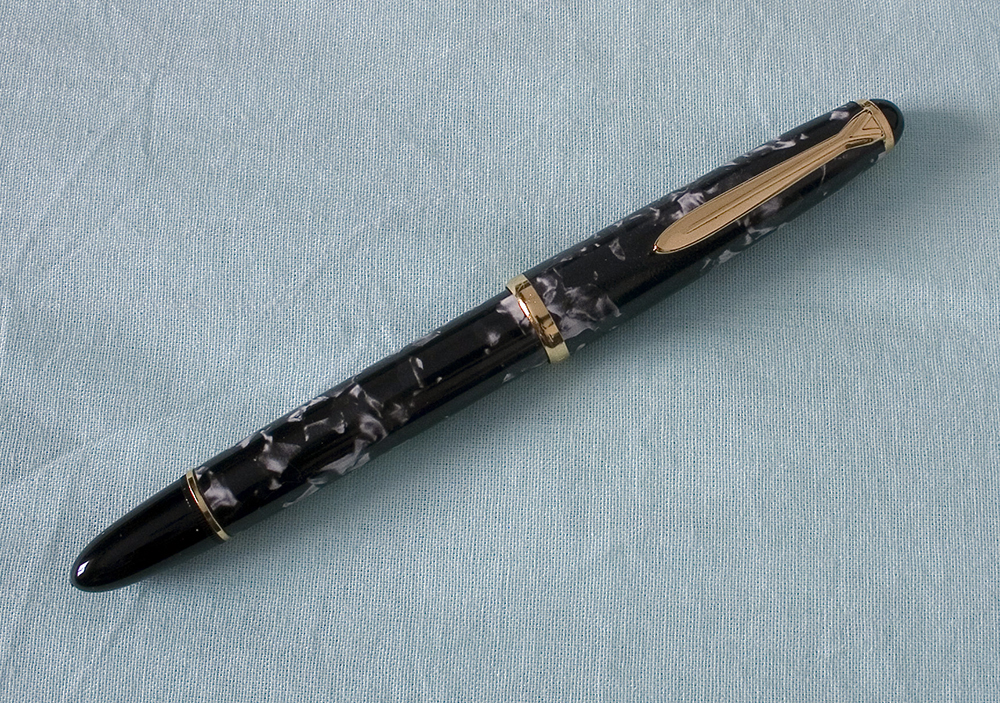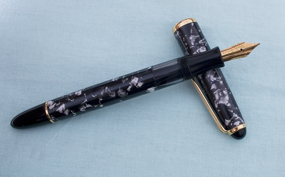 Insomma, dal punto di vista estetico , con quel marmorizzato nero , diciamo che non mi esalta , ma dopo averla usata tanto posso dire che tra le penne che ho provato è una di quelle che mi da più soddisfazione nella scrittura, se poi penso a quanto mi è costata, balza in testa alla classifica, almeno per quanto riguarda il rapporto soddisfazione/prezzo.