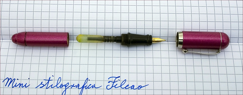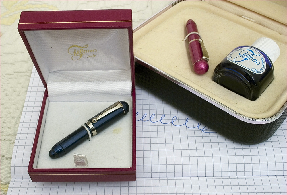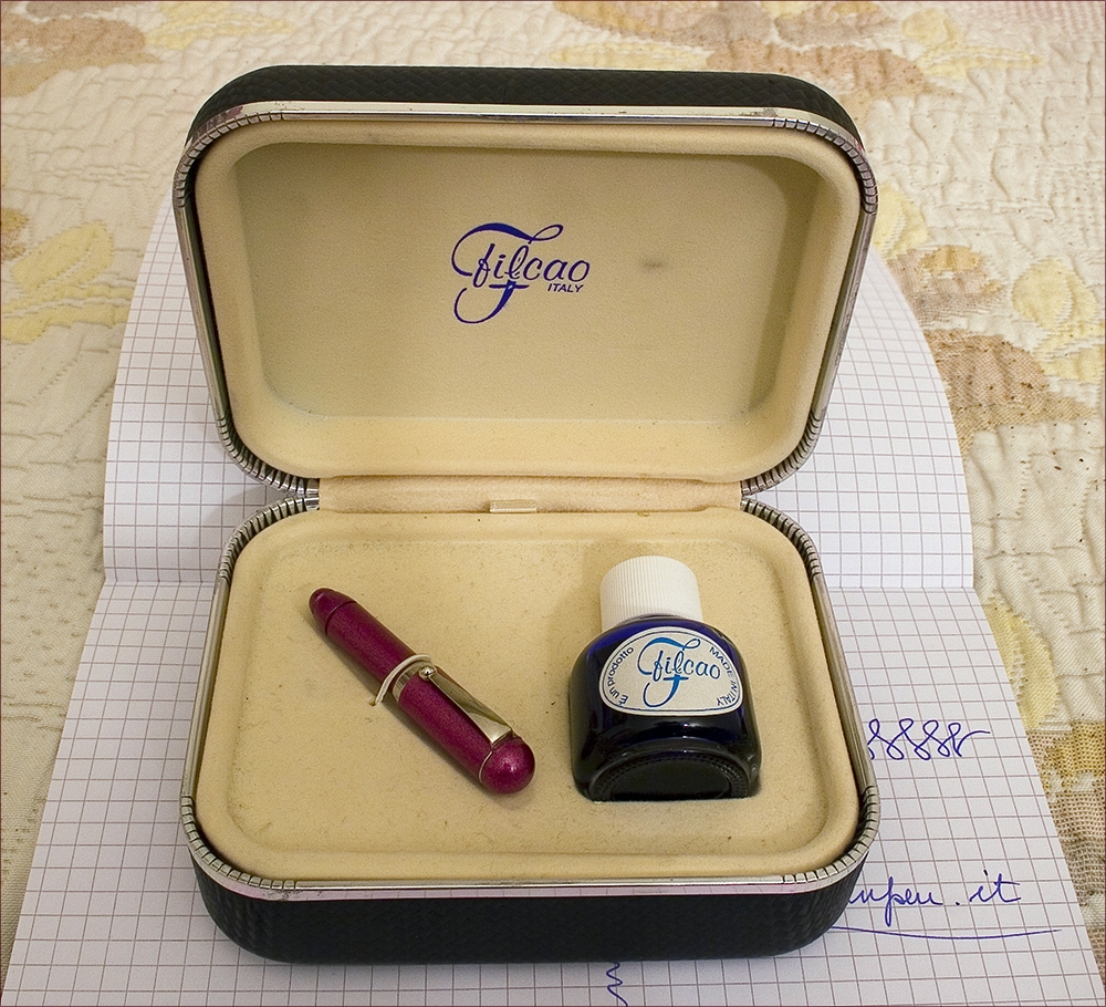 Qualche giorno fa mi aggiravo tra le bancarelle di un mercatino alla ricerca di qualcosa che attirasse la mia attenzione, e quando ormai stavo per desistere è apparso un bell’ astuccio marchiato piacevolmente Filcao con una minuscola penna e una boccetta di inchiostro.