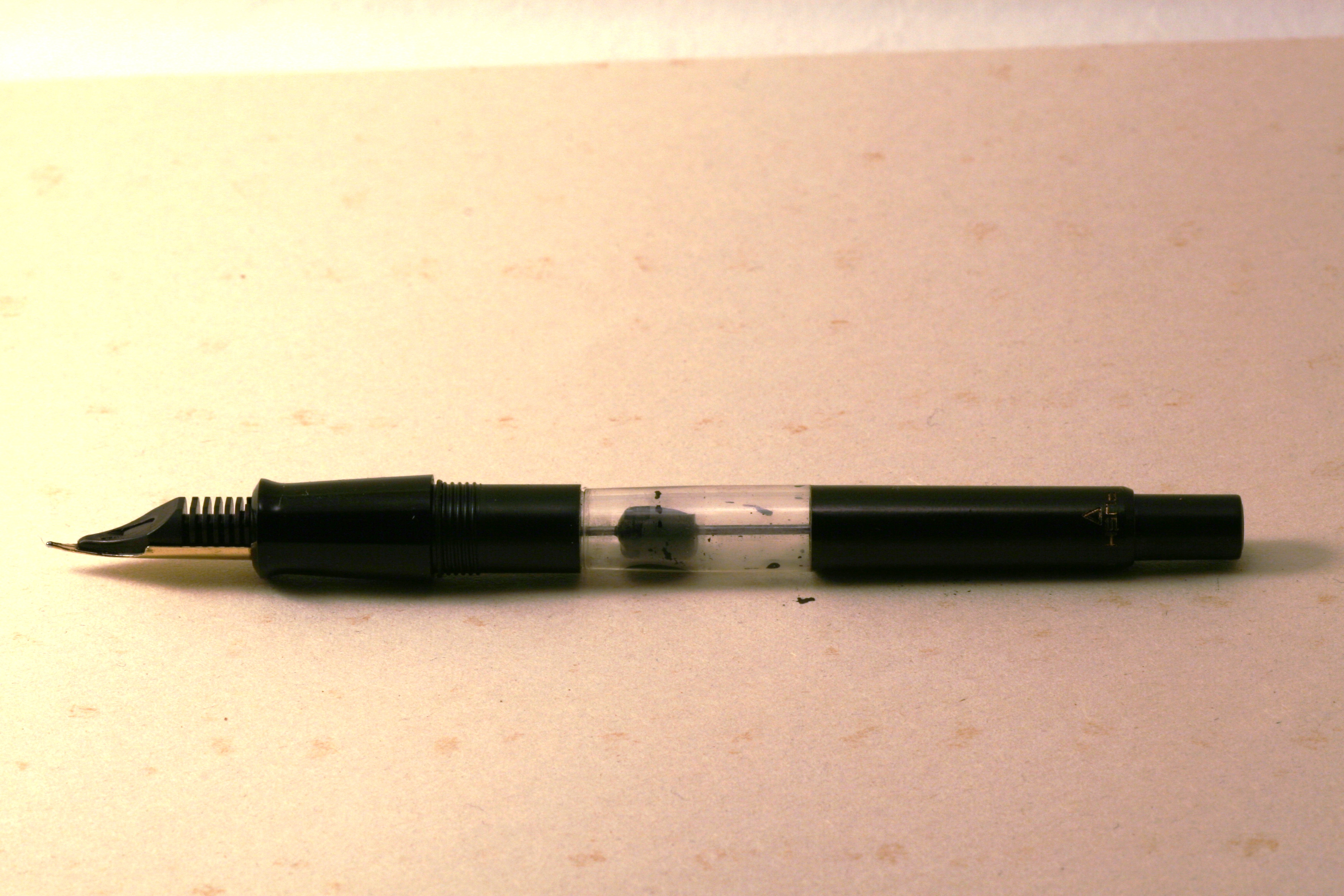 Sistema di riempimento: la penna è dotata di un converter speciale con un bottone a molla sul fondo che, premuto e rilasciato con il pennino immerso nell'inchiostro provoca un vuoto che aspira l'inchiostro stesso.
