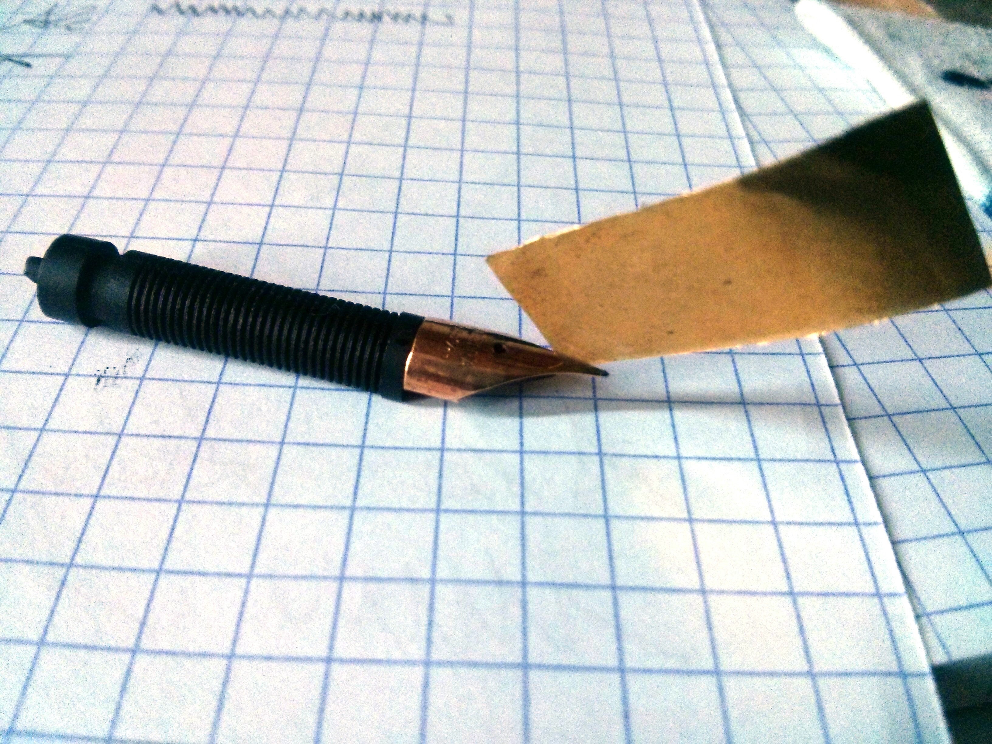 dopo qualche mezz'ora di lavoro tra la mattina e il pomeriggio ho continuato con questa operazione di "limatura" ma il pennino sembra essersi allargato molto poco. ora si vede luce (che prima non si vedeva) ma non fino alla punta tonda del pennino.