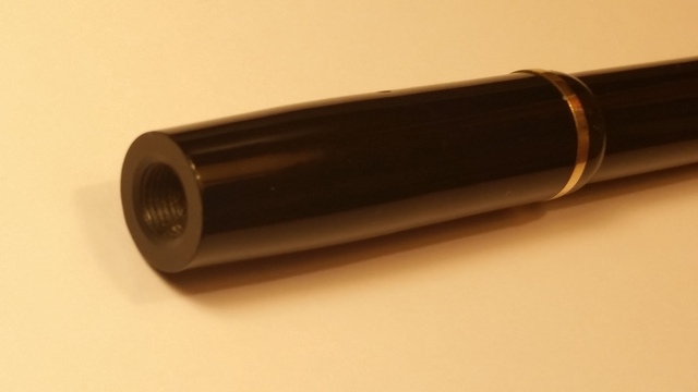 La testina delle Duofold, sia della reie "flat top" che della "streamlined" ha una filettatura molto più larga, che non potrebbe calzare nella tua penna. I modelli inglesi, molto più simili esteticamente alle Vacumatic credo che al contrario non abbiano neppure una vera e propria testina, ma come nella vacumatic la clip è fissata in sostanza dal "jewel" o meglio dalla boccola metallica su cui il predetto è avvitato.