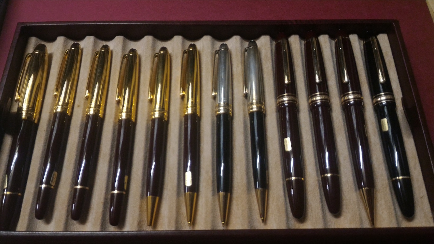 Guardando le penne sono rimasto colpito dalla schiera di Montblanc, su una si vede chiaramente il punzone 925, quindi penso che quelle argentate siano tutte in argento massiccio. Per quanto riguarda quelle dorate? Non saranno mica d'oro. Vero?