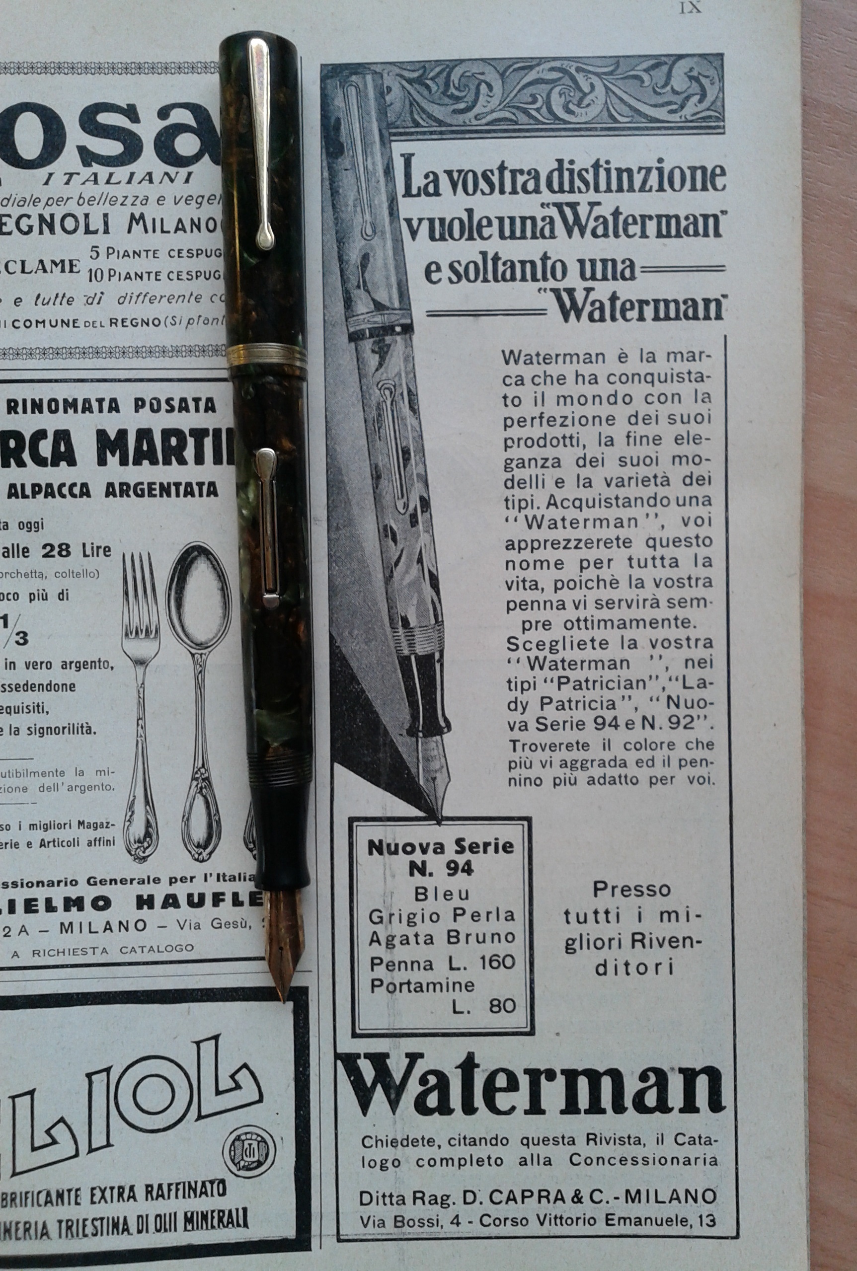 Dalla pubblicità di inizio 1932 possiamo ricavare la corretta denominazione del colore secondo il rappresentante Waterman per l'Italia, che risulta essere