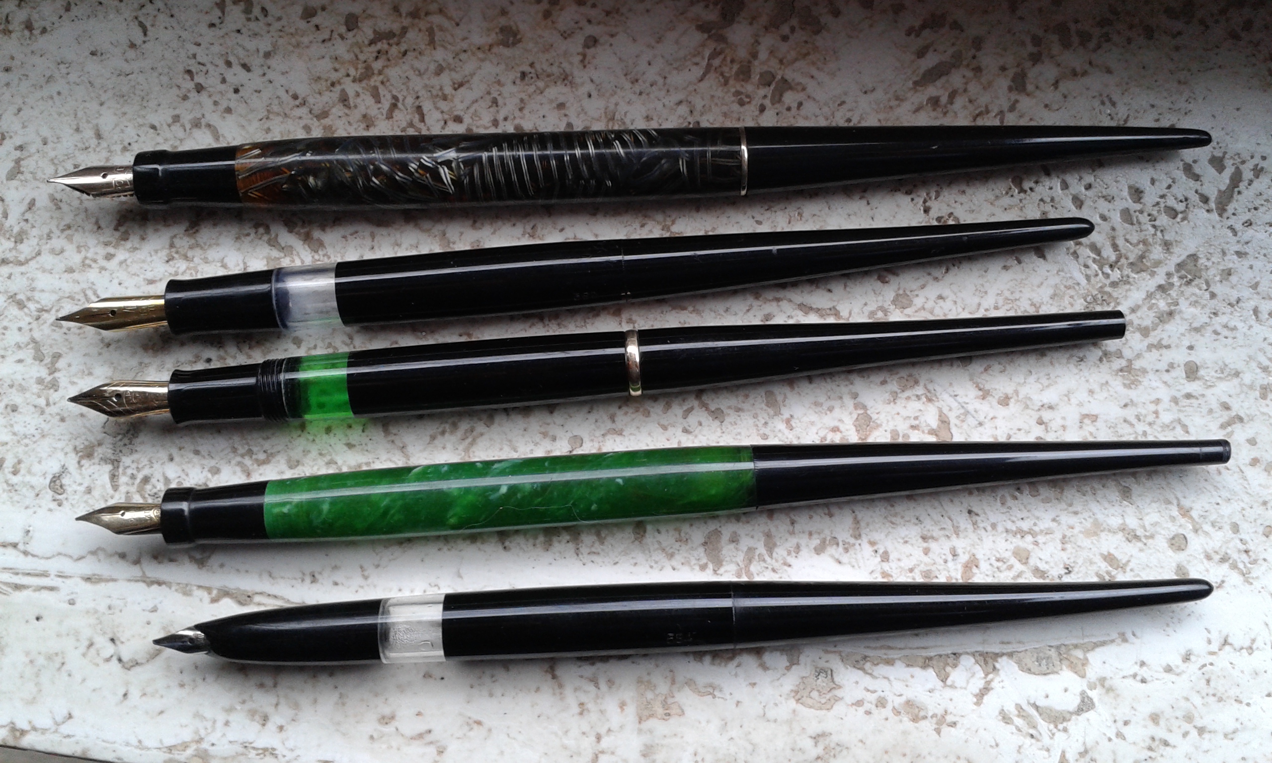 Vi presento i primi acquisti del 2016, ovvero 5 stilofori (forse più corretto dire penna per stiloforo), uno con annessa scatola, dall'alto in basso.