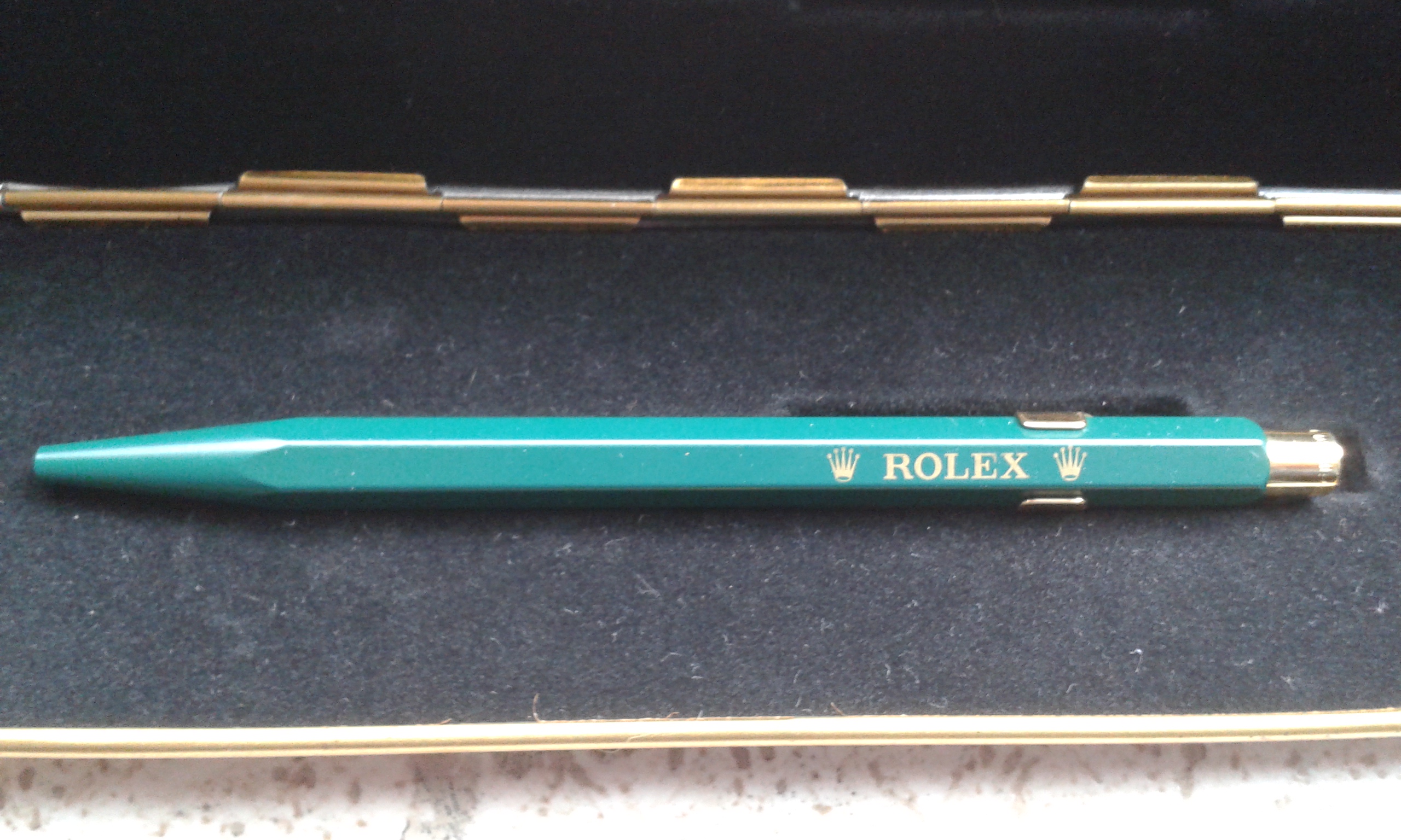 Biro "849" CARAN D'ACHE, con scatola in metallo, non sua in quanto è una penna pubblicitaria marcata "ROLEX", in ottime condizioni e funzionante.