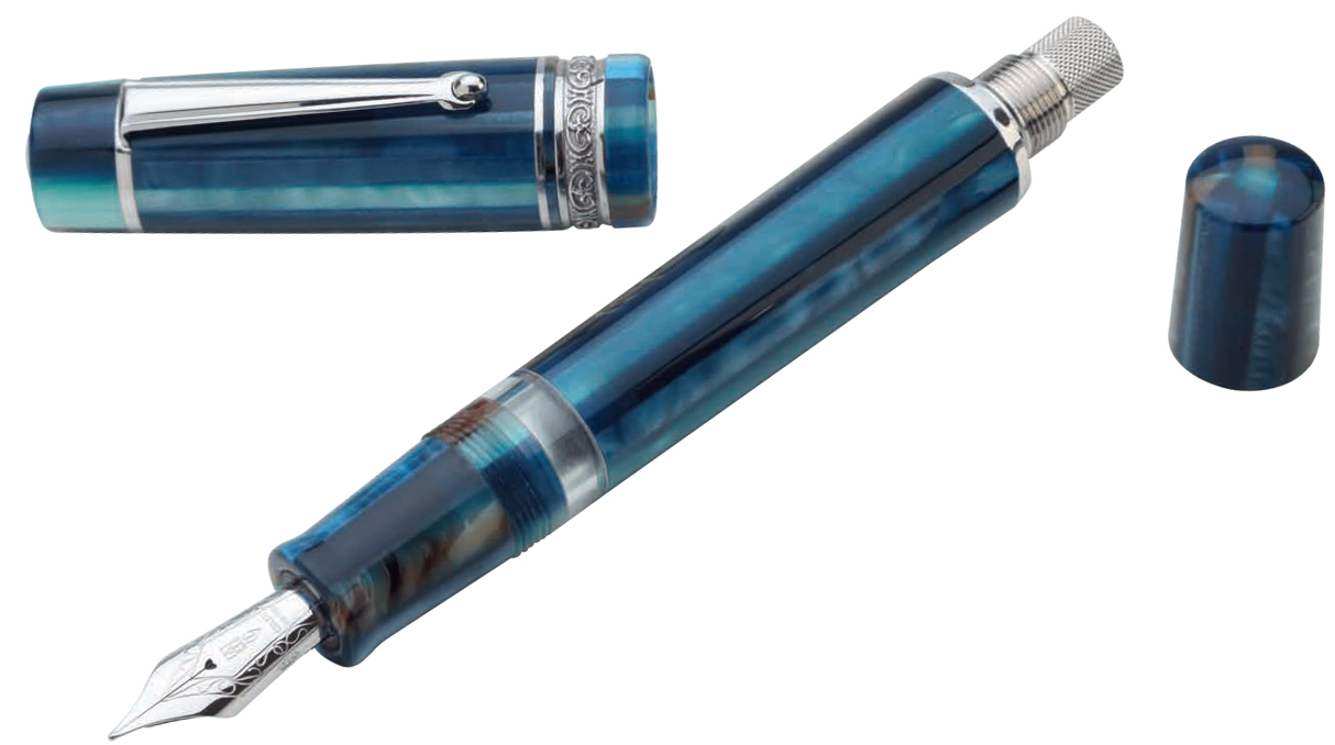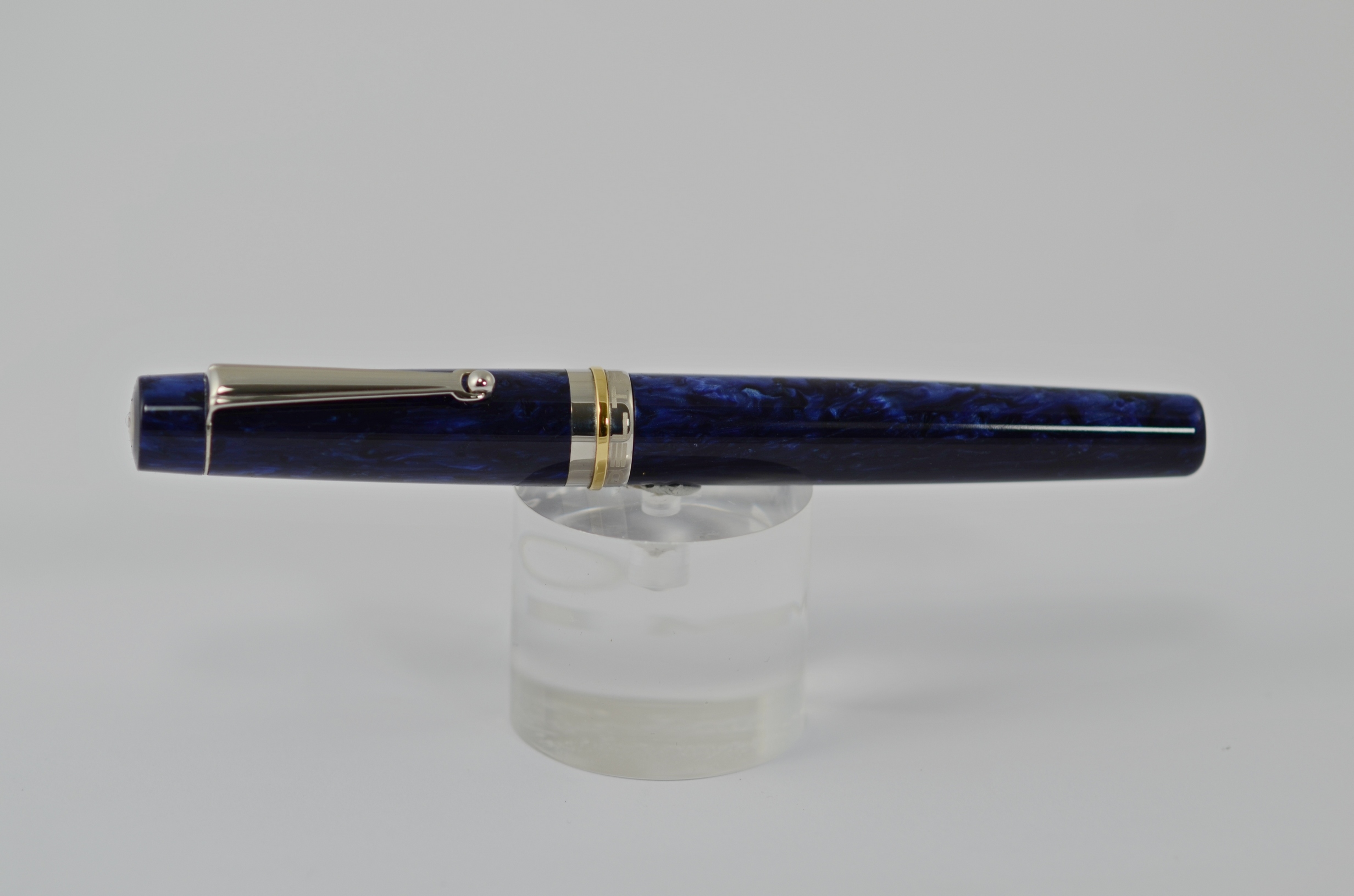 Il problema della Blue Jay è la difficile, se non impossibile, reperibilità. Stringatamente: costruita da Delta per la Casa della stilografica di Firenze (vedi sito) in due versioni cartuccia/converter e stantuffo; quest'ultima è assimilabile a numerosi modelli medium size della casa a stantuffo vedi, per esempio la nota Dolcevita stantuffo. La resina azzurra variegata tornita dal pieno richiama il colore del blue jay un uccellino americano, da cui il nome. Per il mercato straniero Delta ha costruito un modello molto simile alla Nostra, di cui mi sfugge il nome. Per il mercato estero (credo americano) dovrebbe circolare una 'Turchese Meraviglia stantuffo' molto simile alla bluejay in finiture oro e platino - saluti