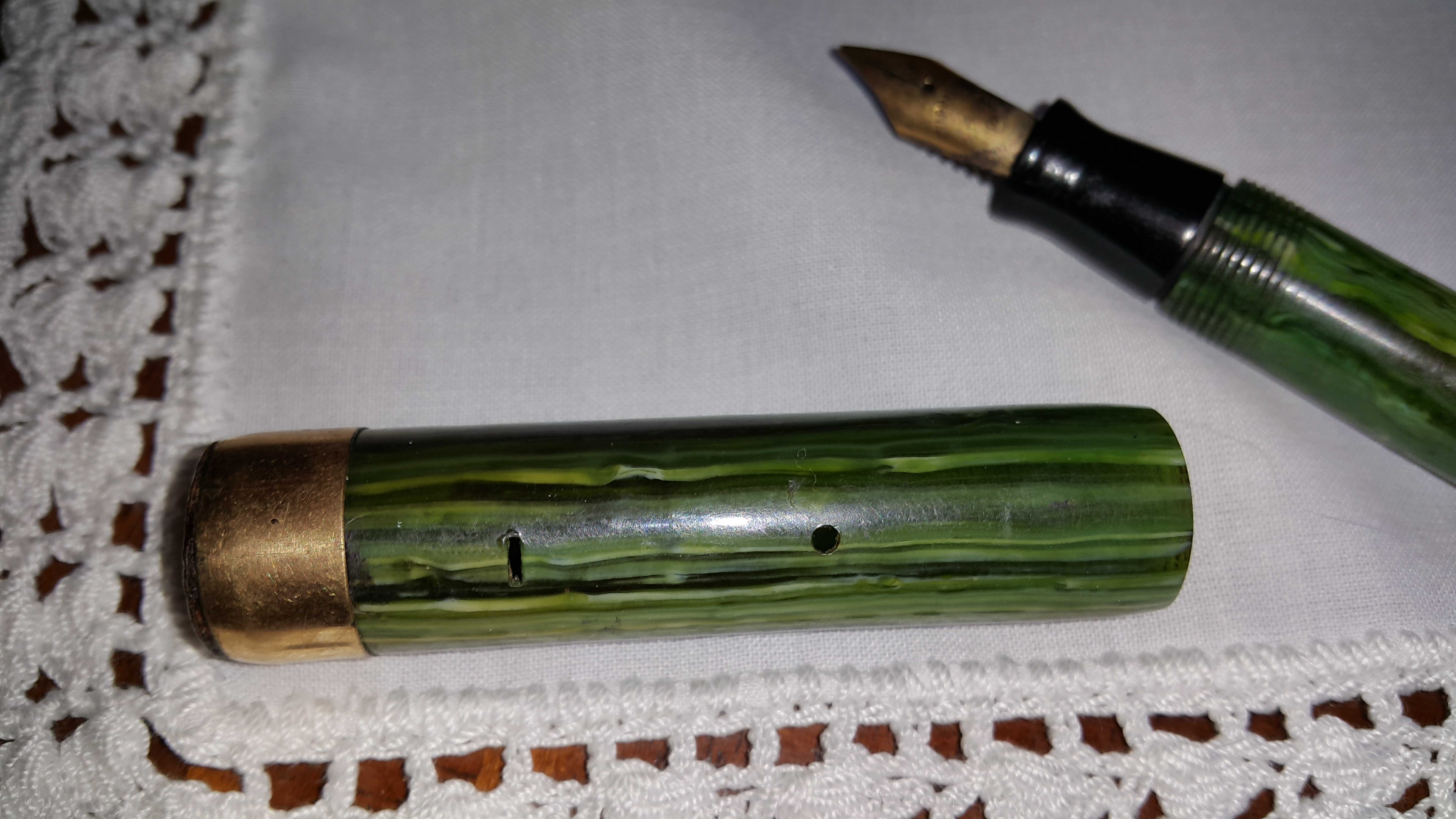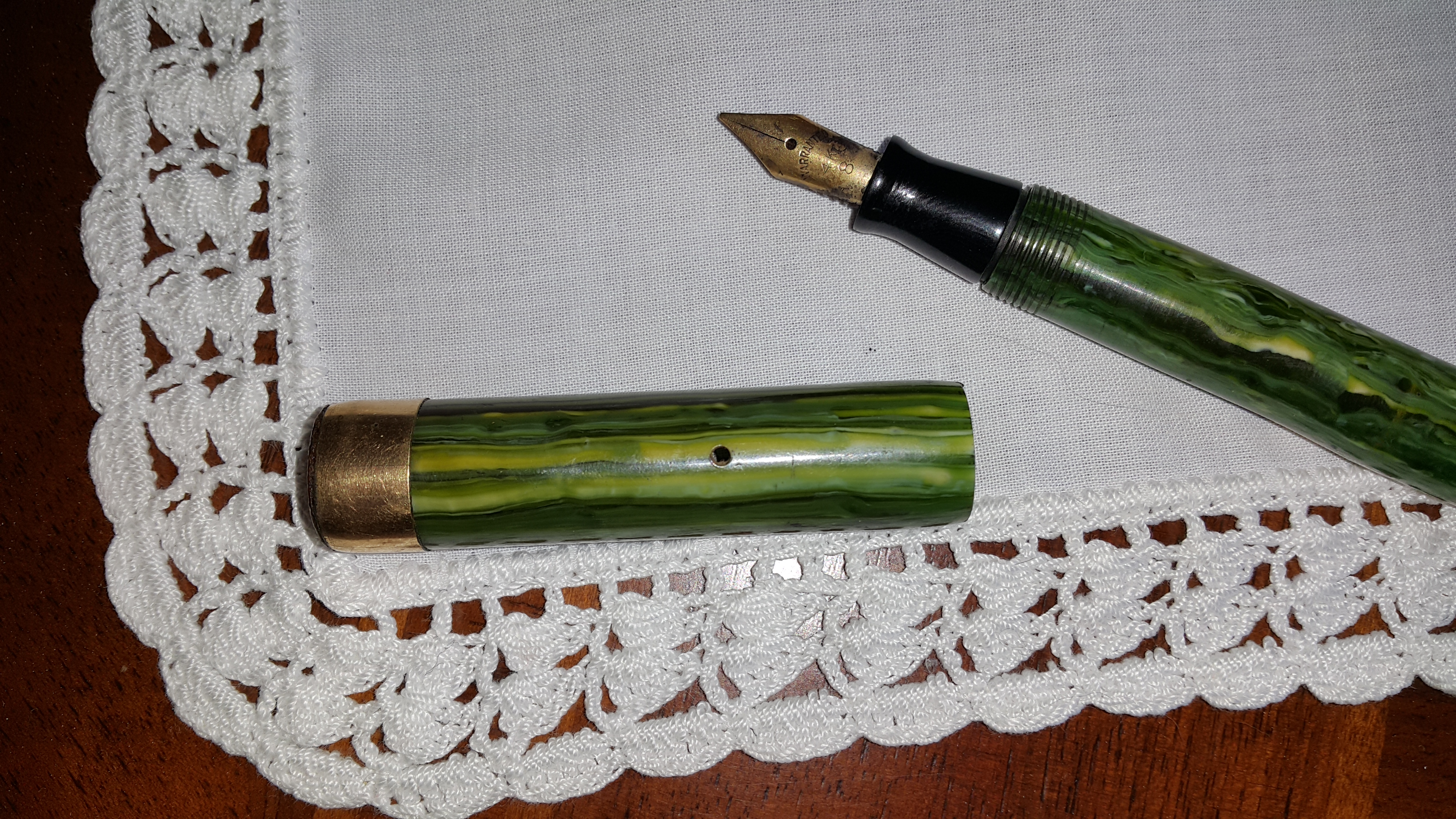 La marca è scritta sulla levetta, marca minore (molto minore) americana nata a metà anni venti. La tua penna è ad occhio successiva (di certo non i primi anni del 1900, le prime levette della sheaffer sono del 1911), più anni '30, direi. Per il valore leggi: