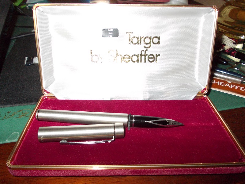E' in acciaio satinato con il magnifico pennino detto "cadillac" per la somiglianza con le code delle auto Cadillac d' epoca.