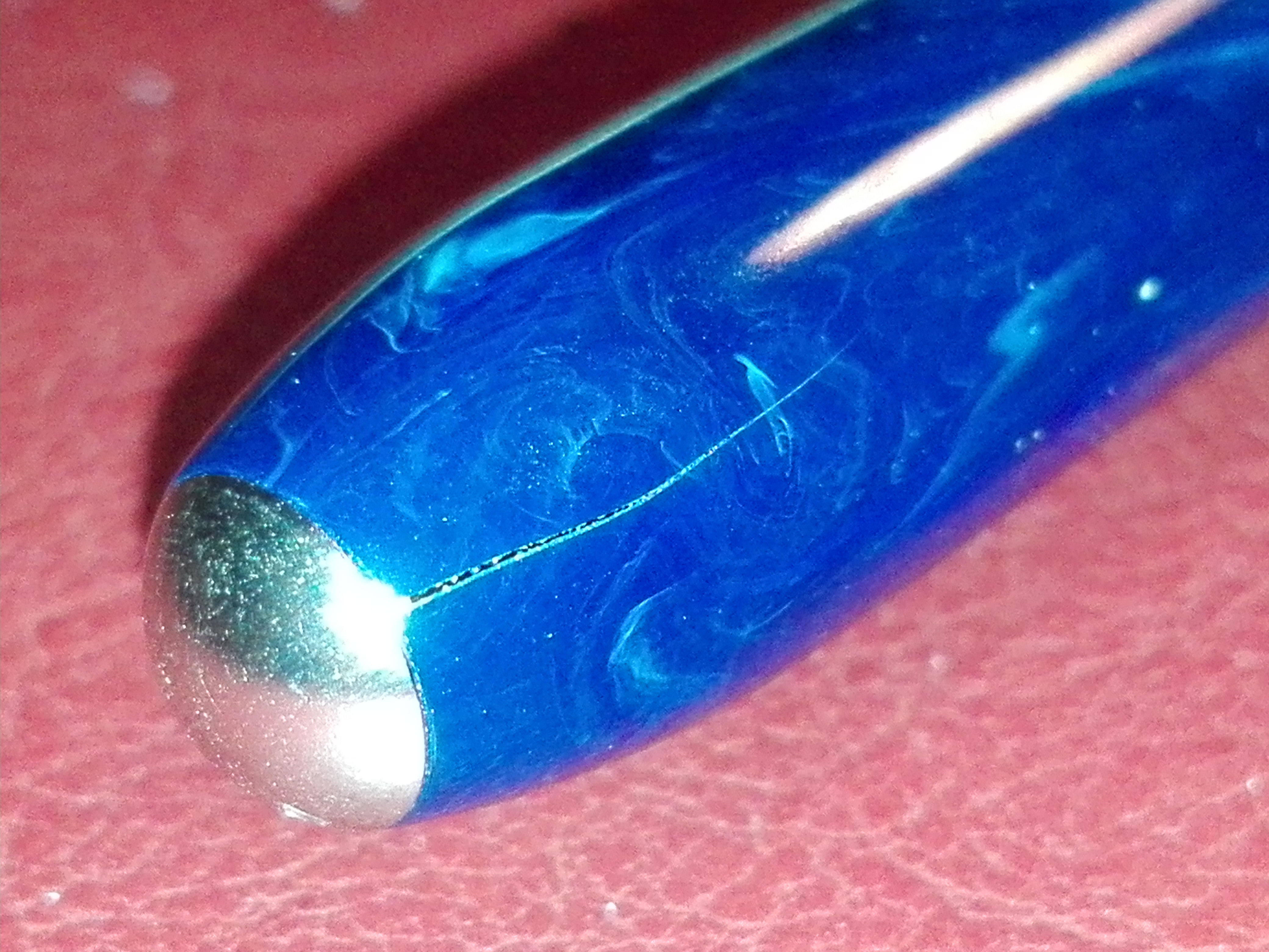 Salve a tutti avrei voluto scrivere il mio primo post in altre circostanze , oggi tornando a Casa dall universitá Bo notato che la Rembrandt regalatami per Il compleanno neanche qualche giorno fa presentava una piccola crepa in proossimitá del fondello che nei giorni scorsi non ho notato pur avendo scrutato la penna da cima a fondo piú volte. Vi allego le immagini volevo sapere se vi èla possibilitá di espansione del danno e in tal caso come procedere( assistenza diretta o negoziante ).
