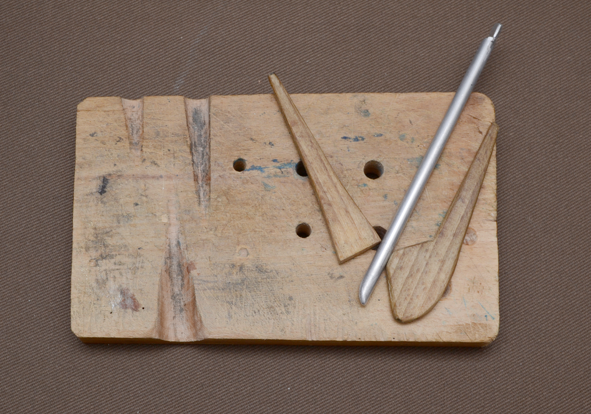 A parte i complimenti per il lavoro, davvero notevole, trovo davvero interessanti gli attrezzi (compresi i burnisher di legno...), ma ti sei autocostruito anche quelli (immagino di si...).
