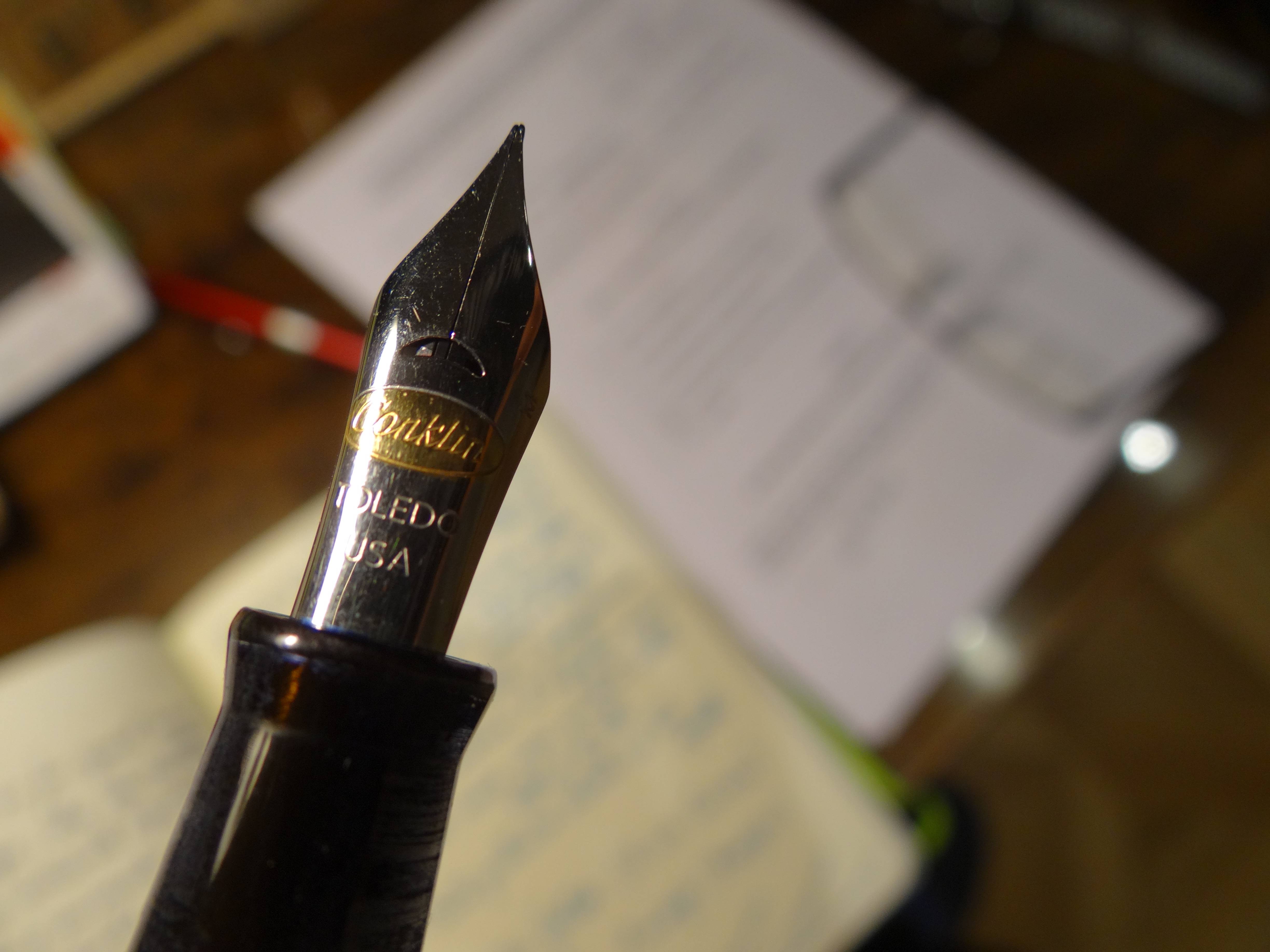 La Conklin ha prodotto penne con pennino #7 e 8; una 70 (S7) è da qualche parte nella mia collezione, e posso con certezza affermare che esiste anche un modello 75 (più spesso visto con cappuccio flattop, tipo quello della Endura), con lo stesso pennino da 7; l'uso (oltremodo raro) di un pennino #8 non modificava la numerazione (ma comunque, di pennini #8 ne ho solo sentito parlare, in discussioni su FPN e ad un vecchip Pen Show a Londra da D. Nishimura; personalmente mai visti neanche in foto)