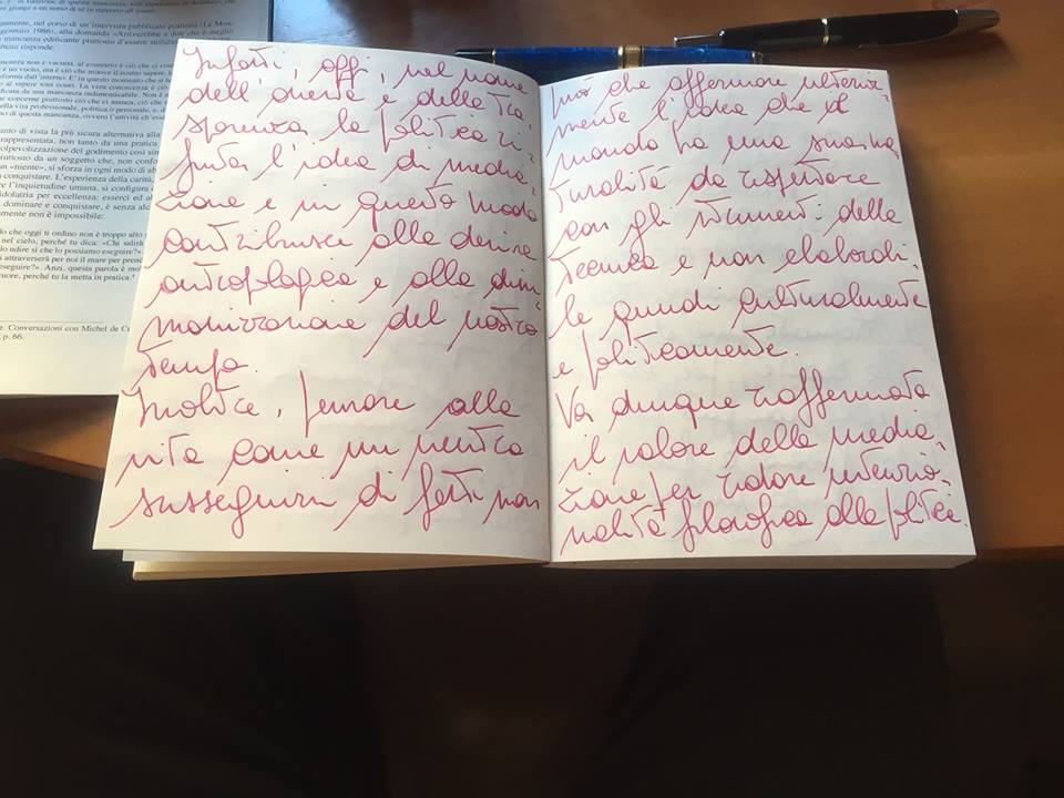 Spero che continuerai così, a scrivere a mano utilizzando il pc solo per ricopiare.