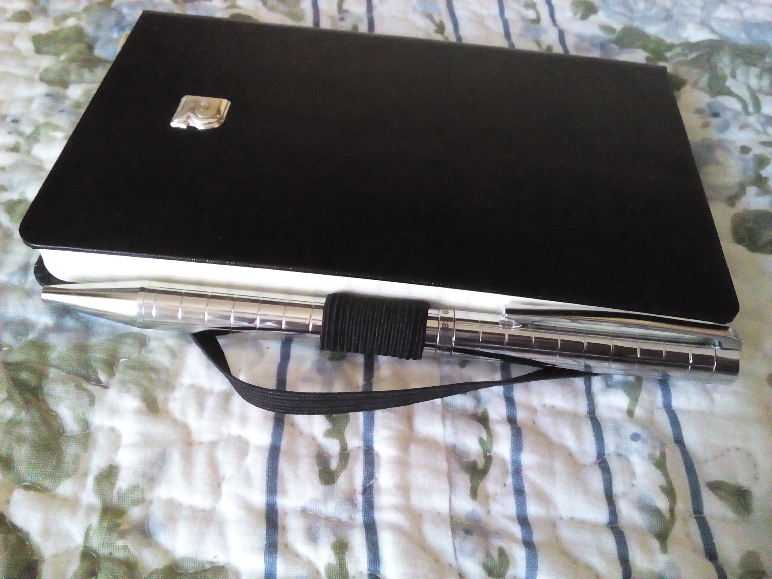 Una correzione degna di nota: sul taccuino leggo "made in Italy" . Chissà se anche la penna è stata commissionata per la produzione in qualche ditta nostrana