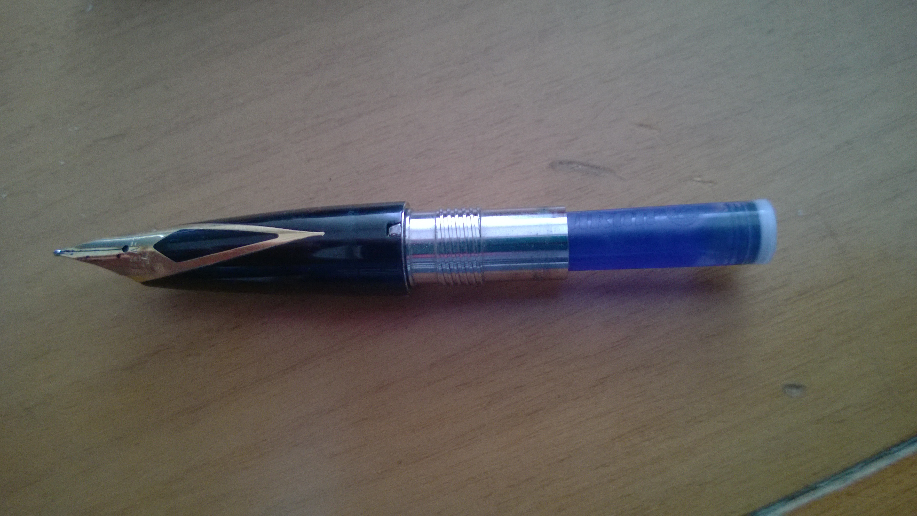 Io per un po' ho cercato di identificarla: per prima cosa ho chiesto a mio nonno, ma non si ricorda che modello sia... Allora ho cercato un po' nel potente internet per capire di che penna si trattasse; c'è stato un momento di gioia quando pensavo fosse un'imperial IV, ma è svanito subito dopo aver scoperto che si caricavano in altro modo, e non a cartucce. quindi anche l'internet è stato un nulla di fatto...