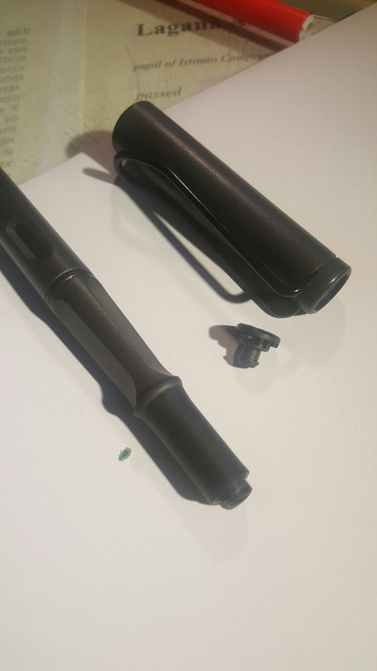 Salve ragazzi, oggi la mia lamy safari umbra ha smesso di fare click quando le rimetto il tappo e lo stesso ha perso notevole capacità di aderenza.