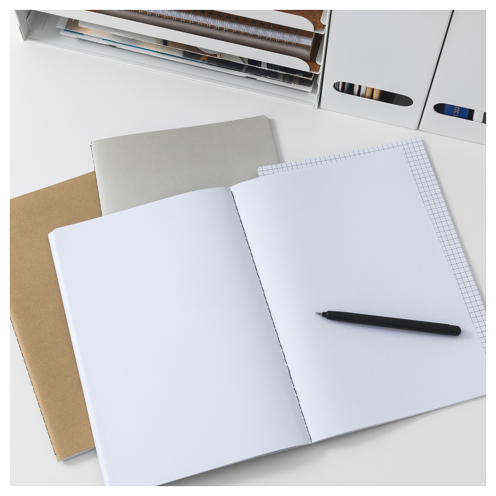 i FULLFÖLJA, venduti in due misure (io ho scelto quelli più grandi del normale), con le copertine monocromatiche in tinte "carta ricilata", che li rendono un po' (gradevolmente) vintage. Grammatura: 80 g/m²
