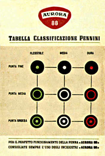 Non saprei, la mia ha un circolo verde, il pennino è assolutamente fine e rigido, può anche essere stato cambiato nel tempo ma ho idea che questa stilografica sia stata usata molto poco.
