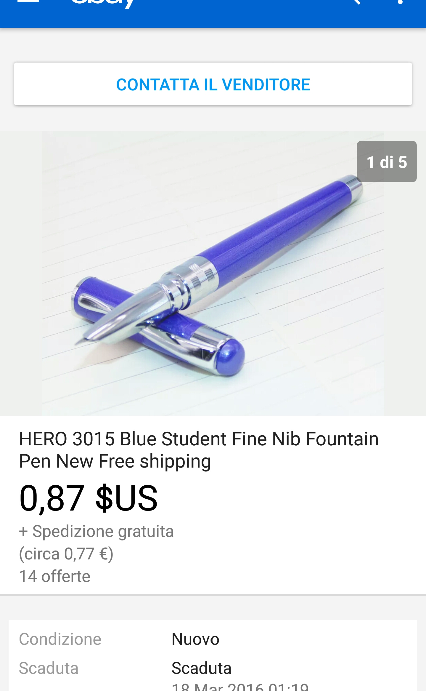 Volelevp provare una Hero 3015, ho letto che è tra le più comuni scolastiche anche se estaticamente non è tra le mie preferite, ha un extrafine davvero notevole, e poi... potevo lasciarla incustodita sulla baia, per soli 77centesimi?JohnCAN ha scritto:Dall'oculista ci devo andare io!