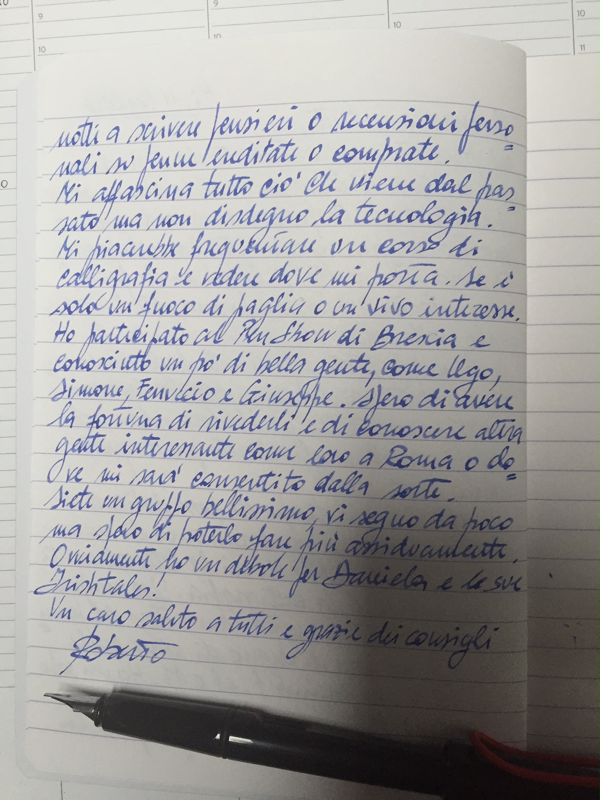 Credo che le occasioni di frequentare un corso a Milano non mancheranno, in ogni caso la sezione Calligrafia è a tua disposizione. Spero anche che ci racconterai qualcosa sulle tue penne, sugli inchiostri che preferisci, etc...