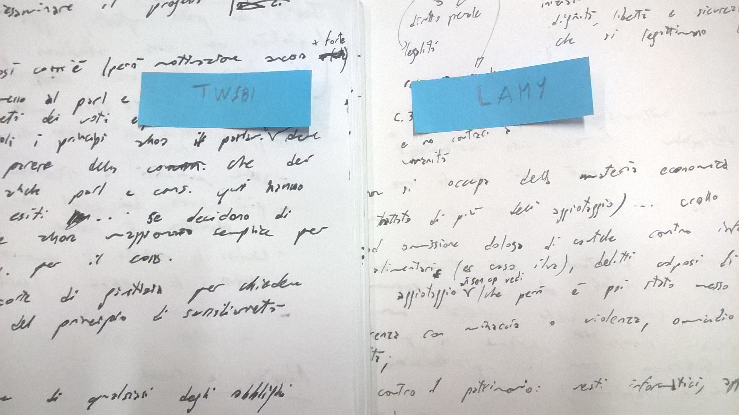 LKopps ha scritto:per un po' ho usato una Twsbi eco con pennino F che mi ha un po' deluso in quanto l'ho trovato decisamente più largo di quello delle Lamy (Safari pennino F, ndr)