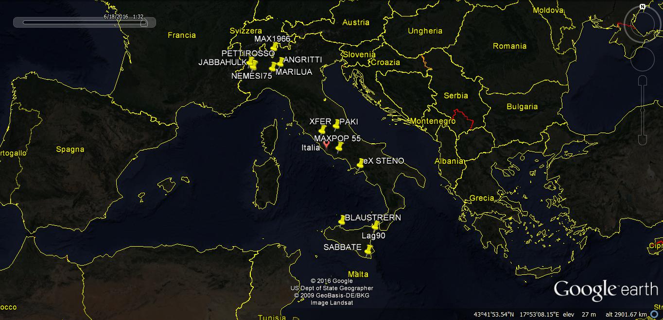 Ecco una prima bozza della mappa degli utenti che han risposto comunicando la loro posizione, purtroppo non saprei proprio come renderla interattiva, quindi, al momento, l'unico che può modificarla sono io, anche se credo ci sia un modo per esportarla e renderla interattiva...devo solo trovarlo!