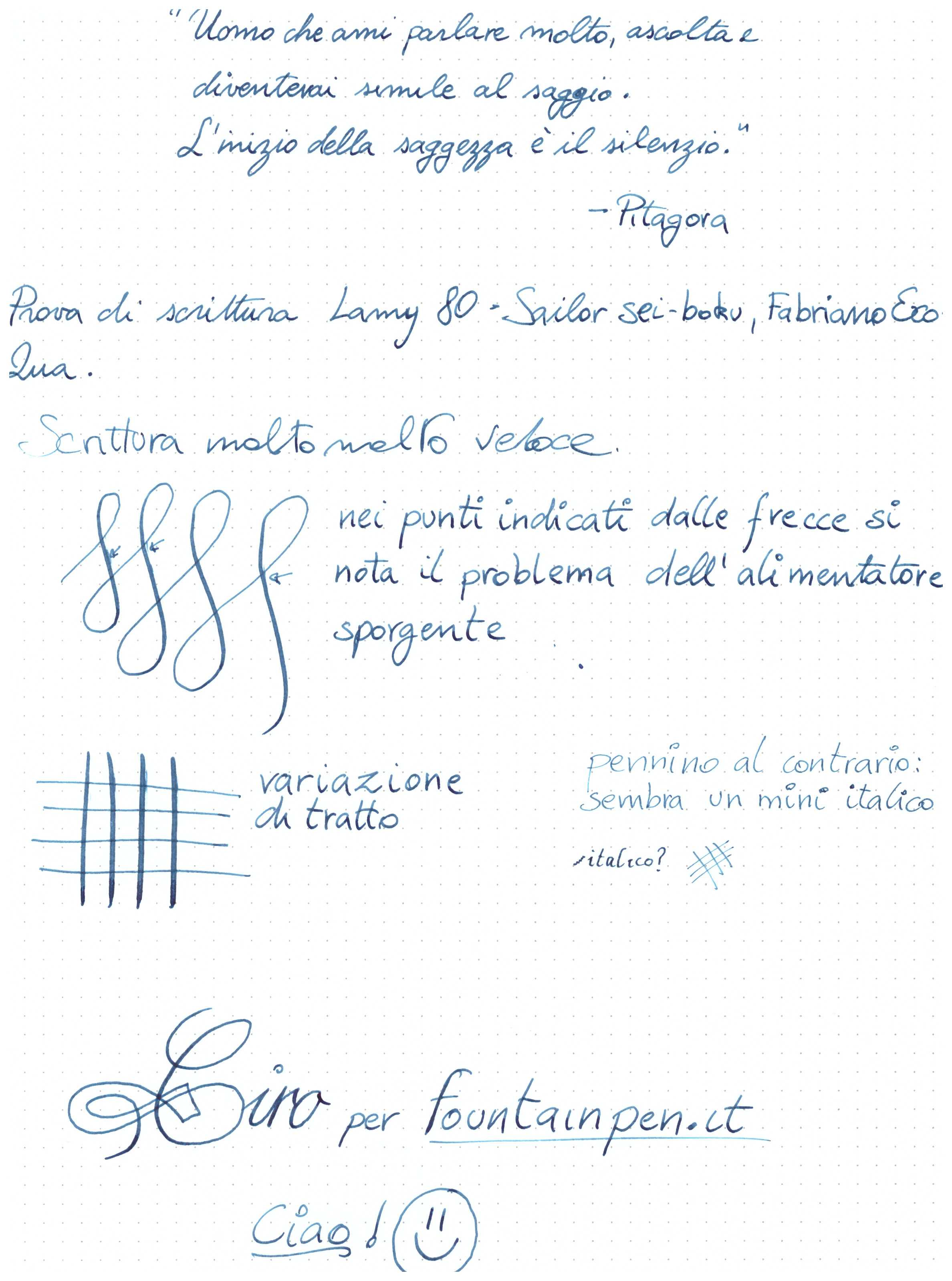 Il pennino del mio esemplare penso sia un EF, molto più fine dell'EF attualmente montato sulle Lamy Safari ma non per questo meno scorrevole, anzi.