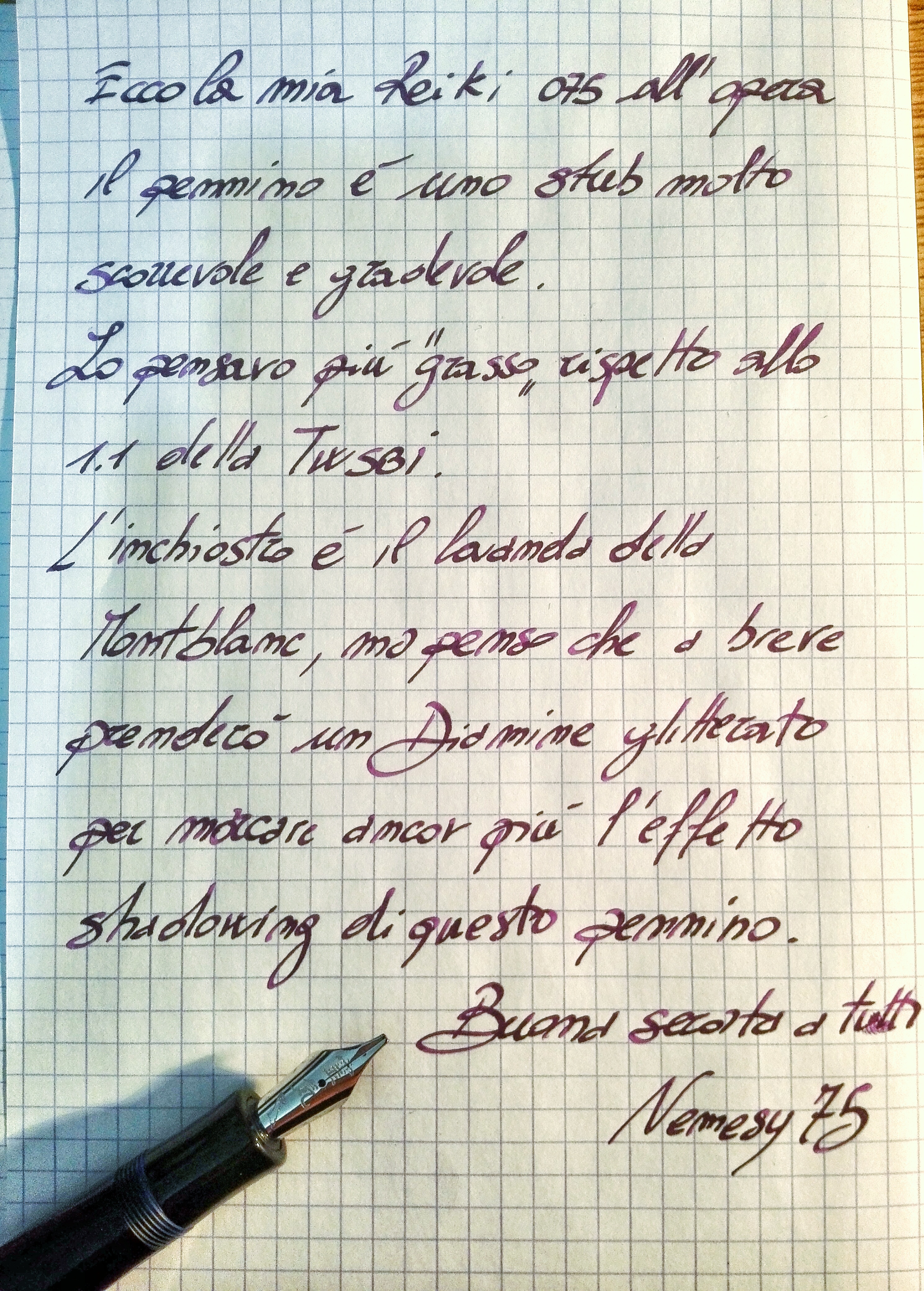 2. False partenze sistematiche: ho guardato al pennino con la lente e ho visto che i rebbi sono disallienati verso il basso. Ho cercato, ed in parte ci sono riuscito, a stringerli un pò, così come suggerito dal wiki, ma purtroppo, non riesco a chiuderli completamente. NOn appena preso il flusso la penna va che è una bellezza.