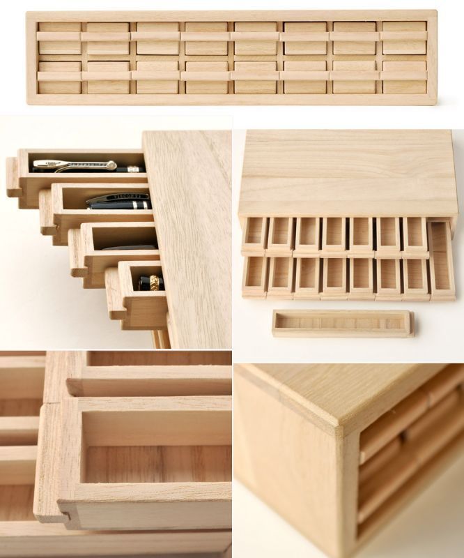Potresti puntare ad un oggetto del genere; credo di averlo comprato da Ikea. Con della balsa fai i divisori che incolli con una colla vinilica