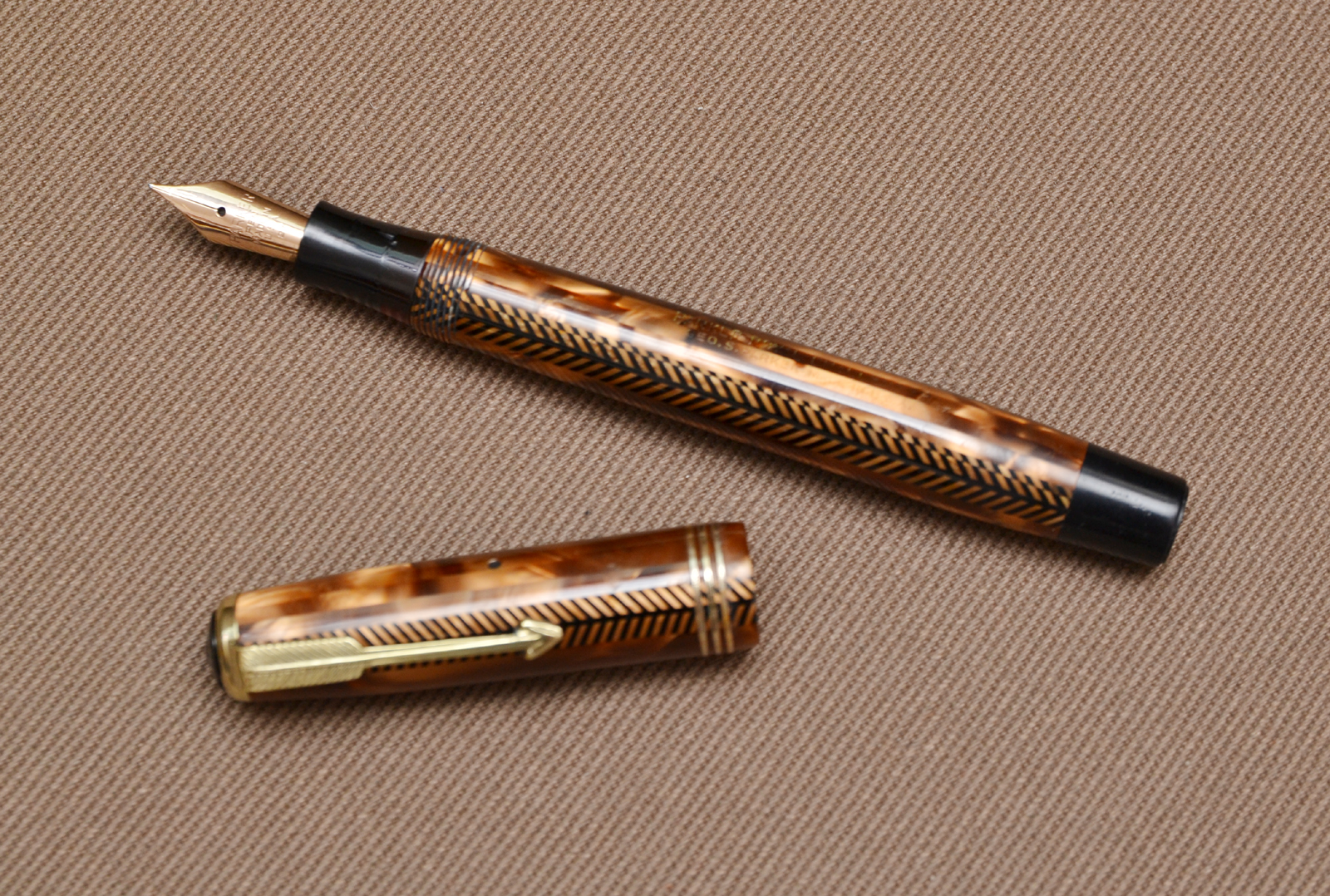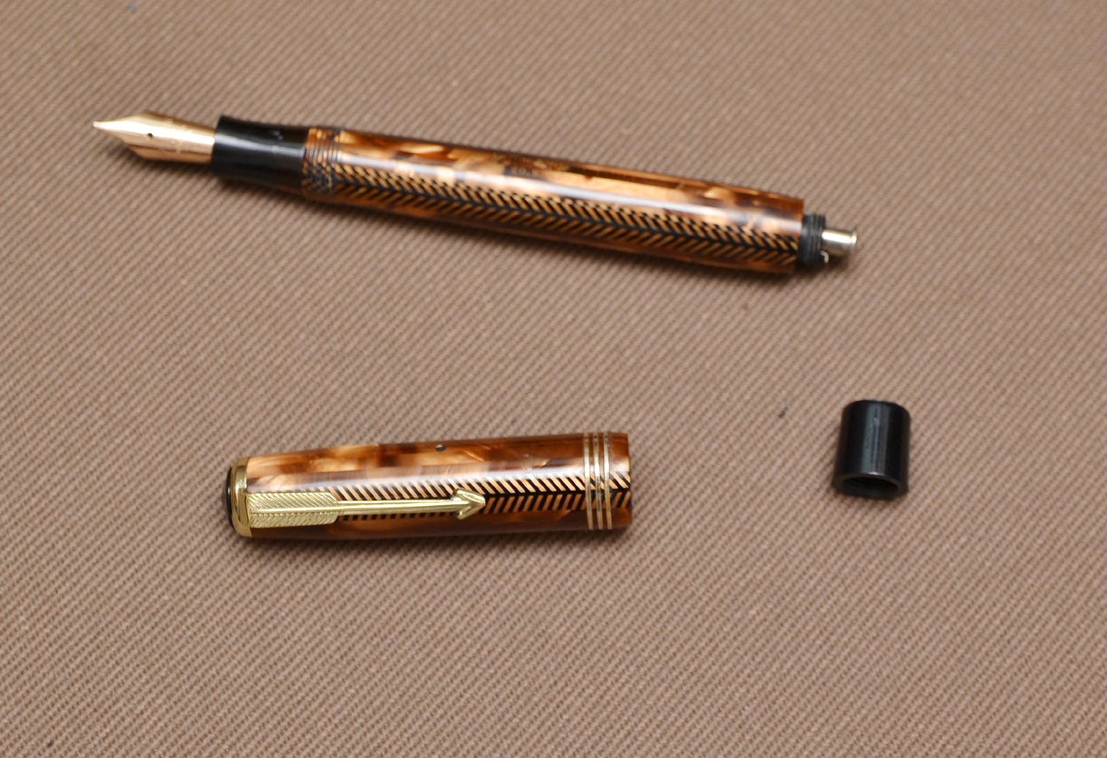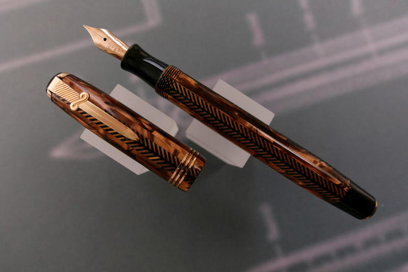 Complimenti per il bel ritrovamento, è una penna molto interessante, specie nel marrone. Ma adesso dovrai metterti alla ricerca dei pezzi, anche perché mi sa che pure la clip non sia quella del modello, ma quella di una Vacumatic.