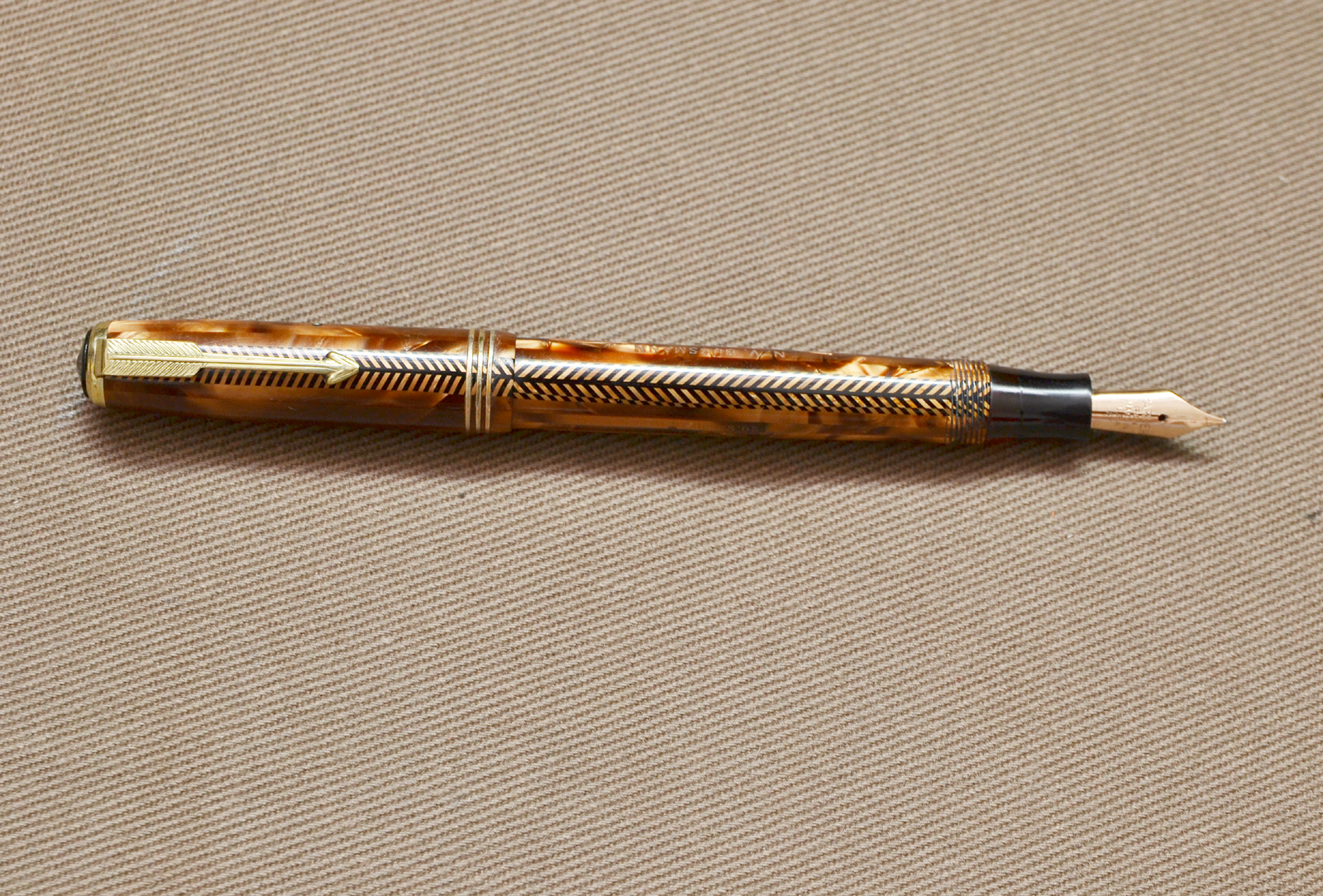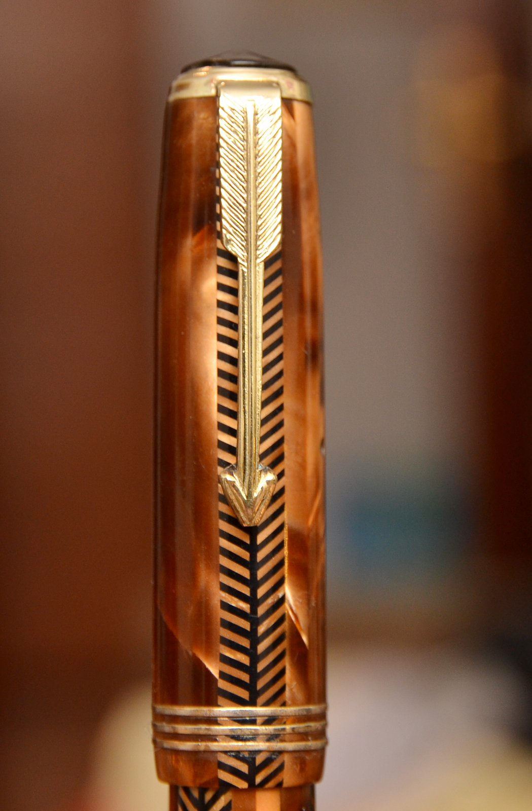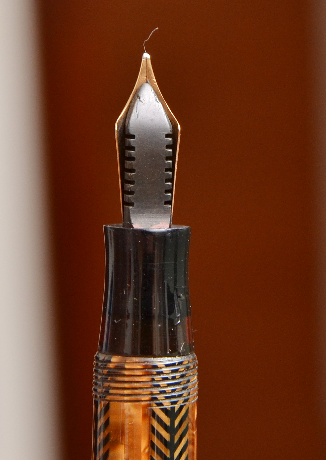 Complimenti per il bel ritrovamento, è una penna molto interessante, specie nel marrone. Ma adesso dovrai metterti alla ricerca dei pezzi, anche perché mi sa che pure la clip non sia quella del modello, ma quella di una Vacumatic.