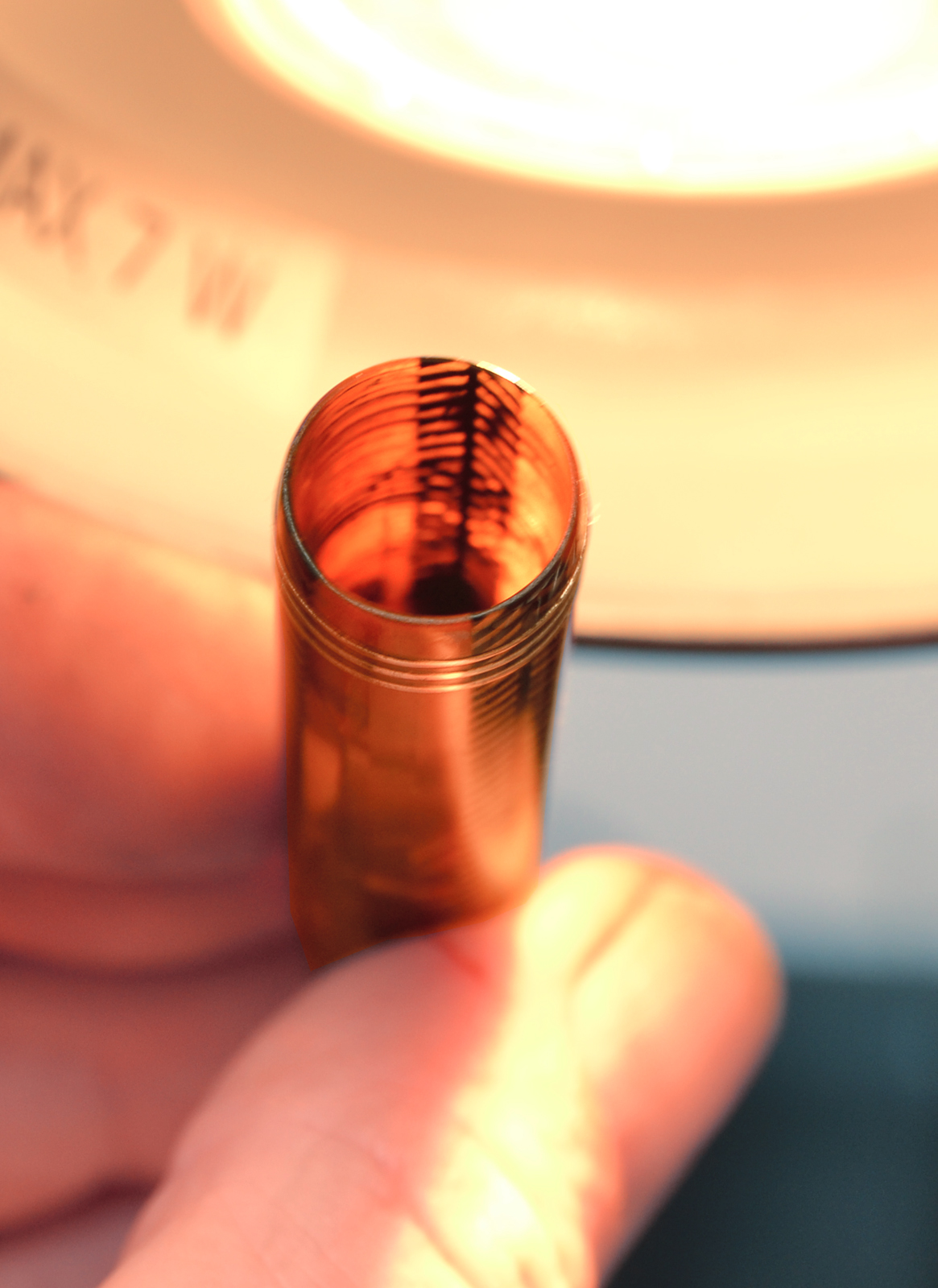 Grazie kircher, il colore è quello del caramello, si è proprio così, come vedi è uniforme ed è lo stesso per tutta la lunghezza della penna, in genere vira solo il fusto.