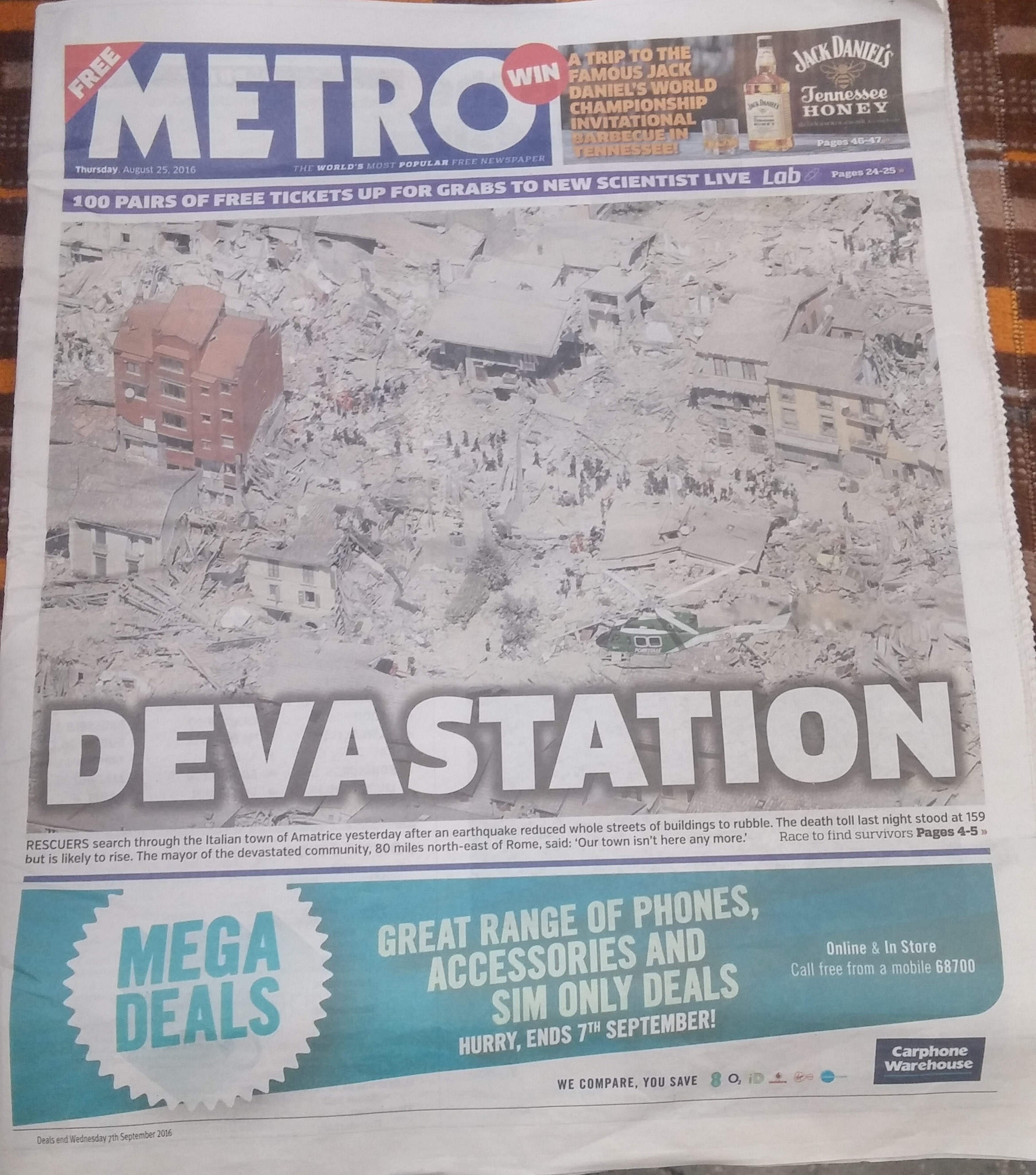 Molte testate giornalistiche inglesi hanno dedicato la prima pagina alla nostra tragedia.