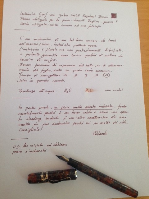 Orlandoemme ha scritto:Ho acquistato un nuovo inchiostro è un Graf Von Faber Castell il cui nome è Hazelmut Brown.