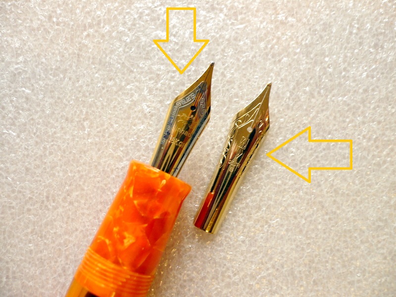 Come estetica ho notato che personalmente preferisco il bicolore al classico monocolore dorato, la Delta lo lo fornisce e quindi per ora ci ho messo provvisoriamente un Jinhao. Altra differenza , è ovviamente il sistema di caricamento, invece del classico converter a vite, possiamo utilizzare un vero stantuffo, che onestamente mi ha convinto, anche se ho avuto un piccolo problema iniziale facilmente risolto.