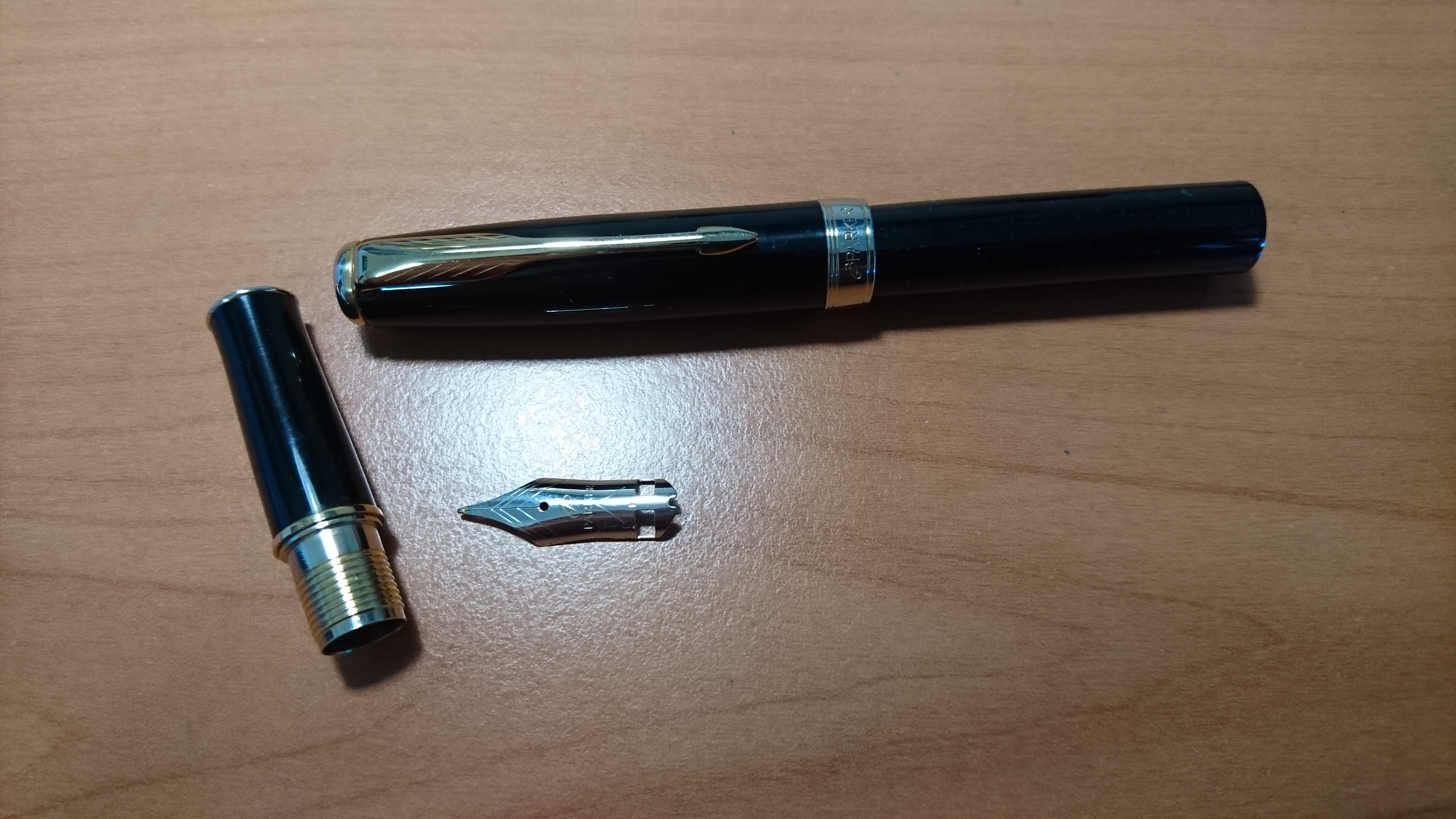 Come potete vedere dall'immagine è saltata parte della doratura sia sulla clip del cappuccio che sul pennino. Sulla clip la doratura sta saltando anche semplicemente raschiando col polpastrello, sul pennino non voglio provare. Mentre sulla base del cappuccio e sul fusto è completamente stabile.