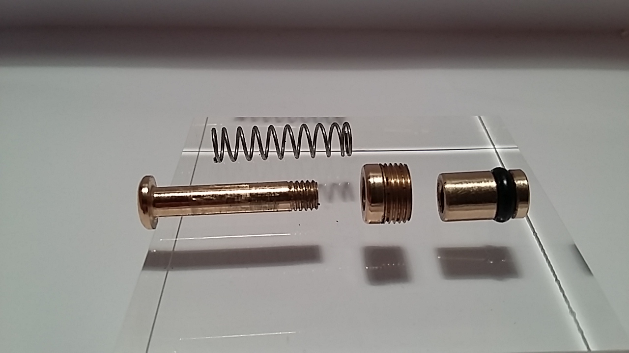 Per ospitare il nuovo sistema ho accorciato il fusto centrale(quello trasparente) allungato il perno che aziona il pistone e un nuovo fondello anch'esso più lungo.