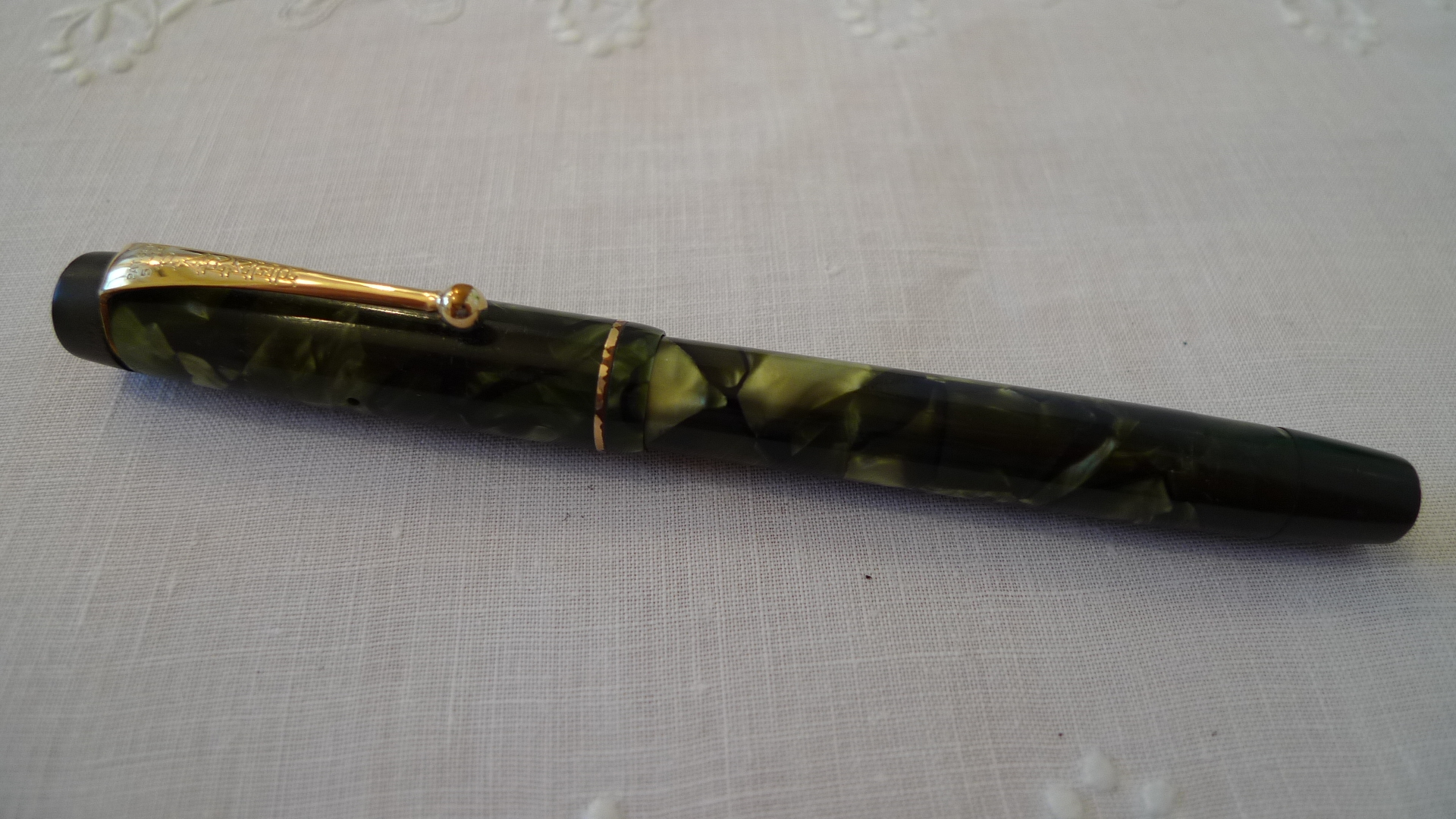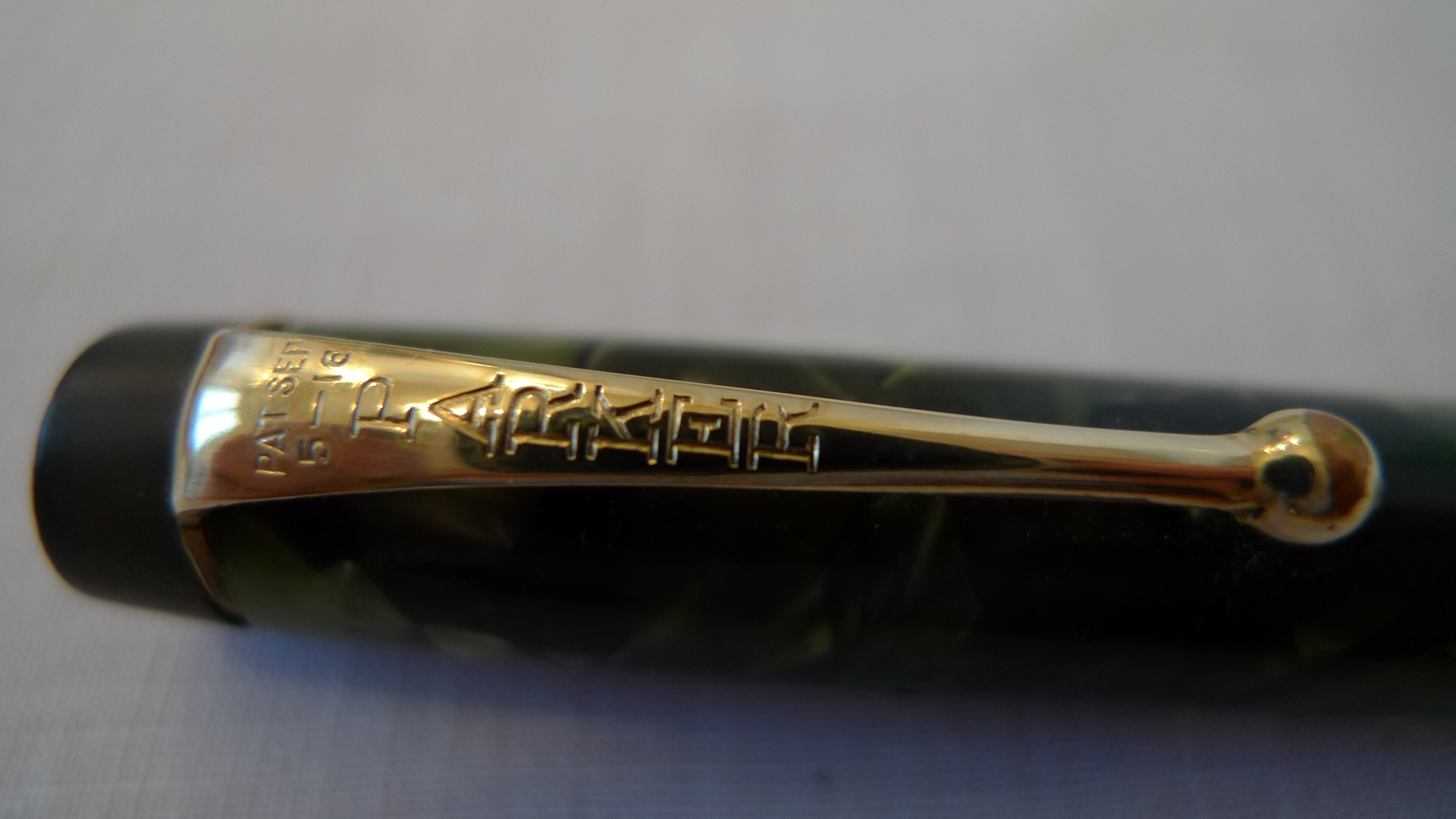 In linea teorica, potrebbe anche trattarsi dell'inverso: una Parker con pennino Valentine, ma tenderei ad escluderlo, data la forma della sezione (e qui passo la parola agli esperti). In ogni caso, se non vado errato, anche le Parker Duofold portavano la loro bella scritta sul fusto.