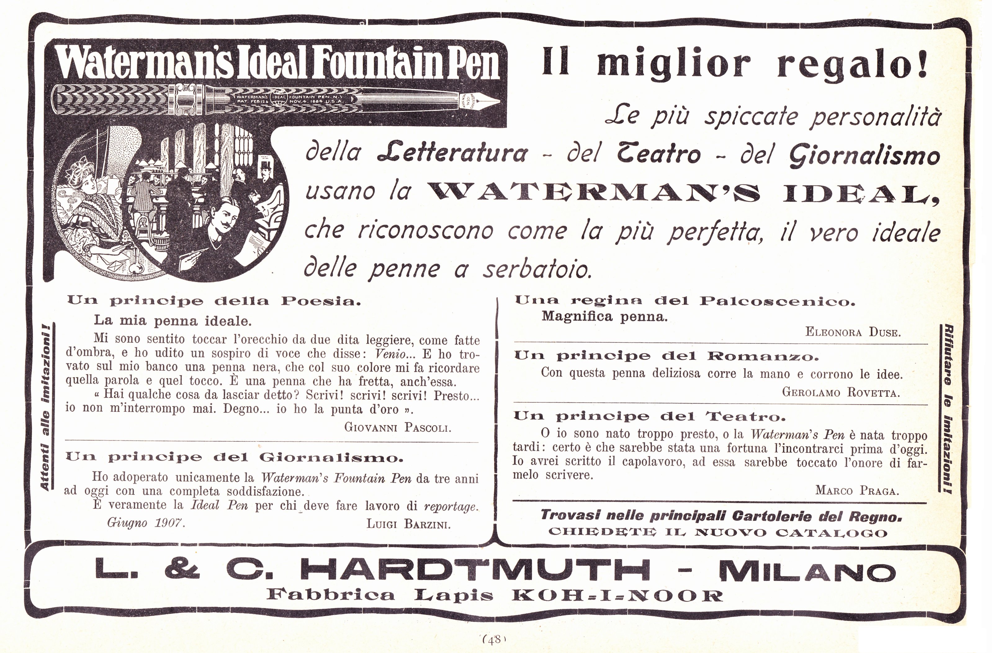 Qui l'opinione di Pascoli (e di altre celebrità non da poco come Eleonora Duse, forse un poco più "autorevole" e concisa del testimonial attuale della Montblanc, l'attore che ha interpretato Wolverine, credo...