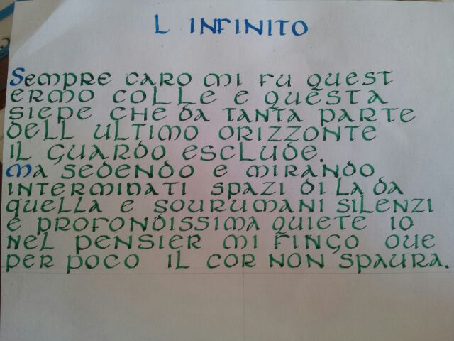 Grazie Daniela e scusami se prima ho pubblicato nel posto sbagliato, la sezione calligrafia mi è nuova e sto imparando solo ora a muovermi qui dentro.Irishtales ha scritto:Ho creato un nuovo argomento tutto tuo nella sezione giusta. In questo modo potrai inserire di seguito gli esercizi futuri in modo da tracciare tutti i passi avanti fatti, il tuo percorso nello stile che stai studiando