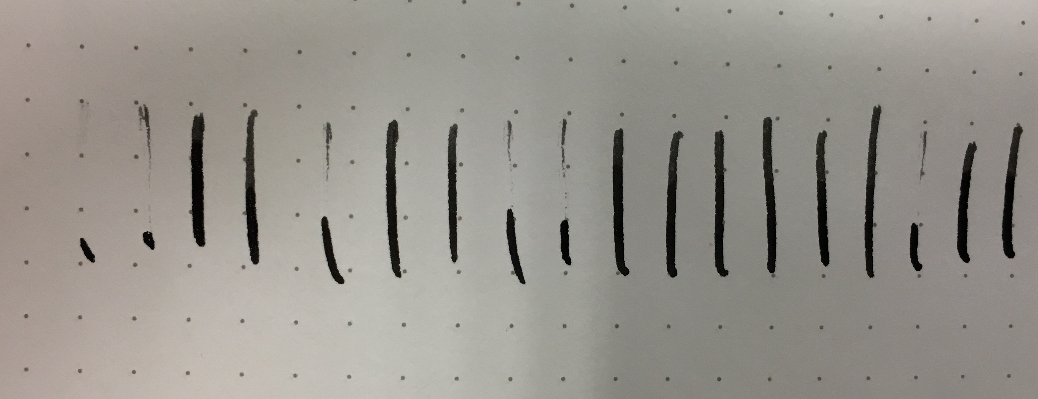 L'ho rispolverata poco fa ma purtroppo ha delle incertezze in partenza (vedi foto, su Fabriano EcoQua) ed il flusso mi sembra abbastanza abbondante (rispetto a Pelikan M150 F e Twsbi ECO).