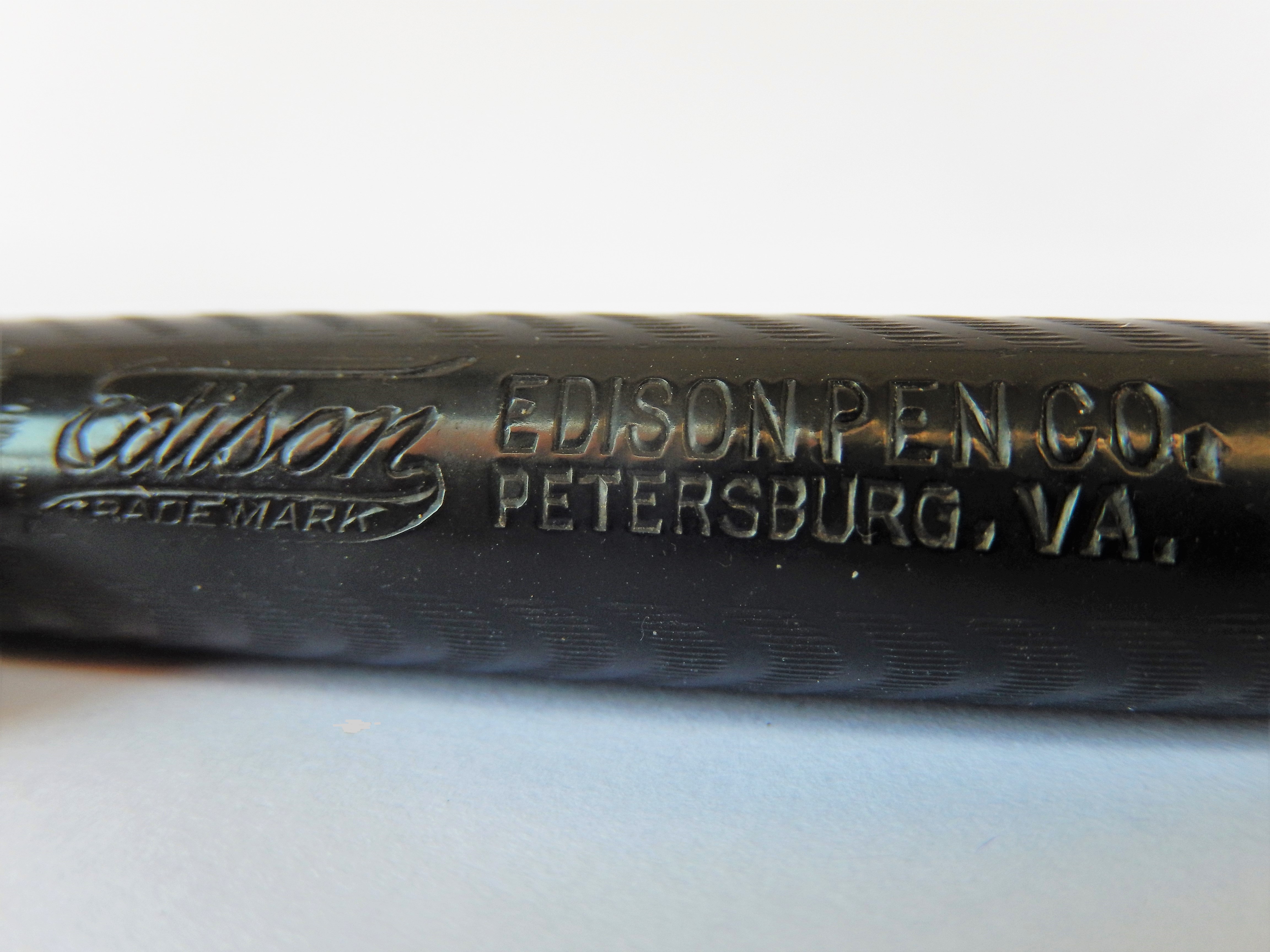 E' una stilografica Edison, un marchio minore americano, fra quelli meno conosciuti e dunque colgo l'occasione per condividere il parziale risultato di qualche ricerca fatta in rete. La prima cosa che mi ha colpito è la provenienza geografica : se infatti la produzione delle penne americane è stata prevalentemente localizzata negli stati del nord e nord-est industriale , come nell'Illinois ( Wahl e Crown), nel Massachusetts (Boston, Leboeuf e Moore), nello Iowa (Sheaffer), nell'Ohio ( Conklin, Holland e molte altre), nel Wisconsin ( Parker, Williamson ), New York ( Waterman) , il marchio Edison si localizza a Petersburg una piccola cittadina nella sudista Virginia.